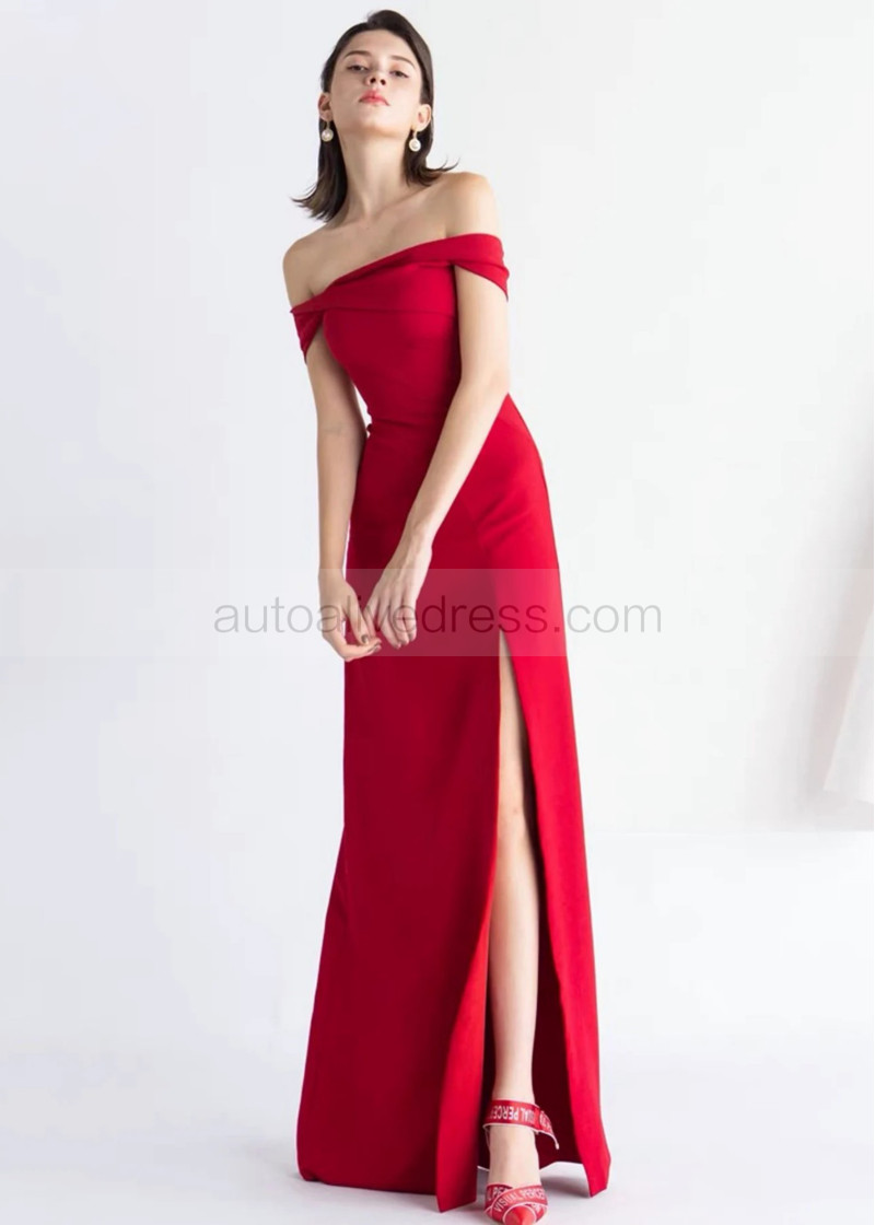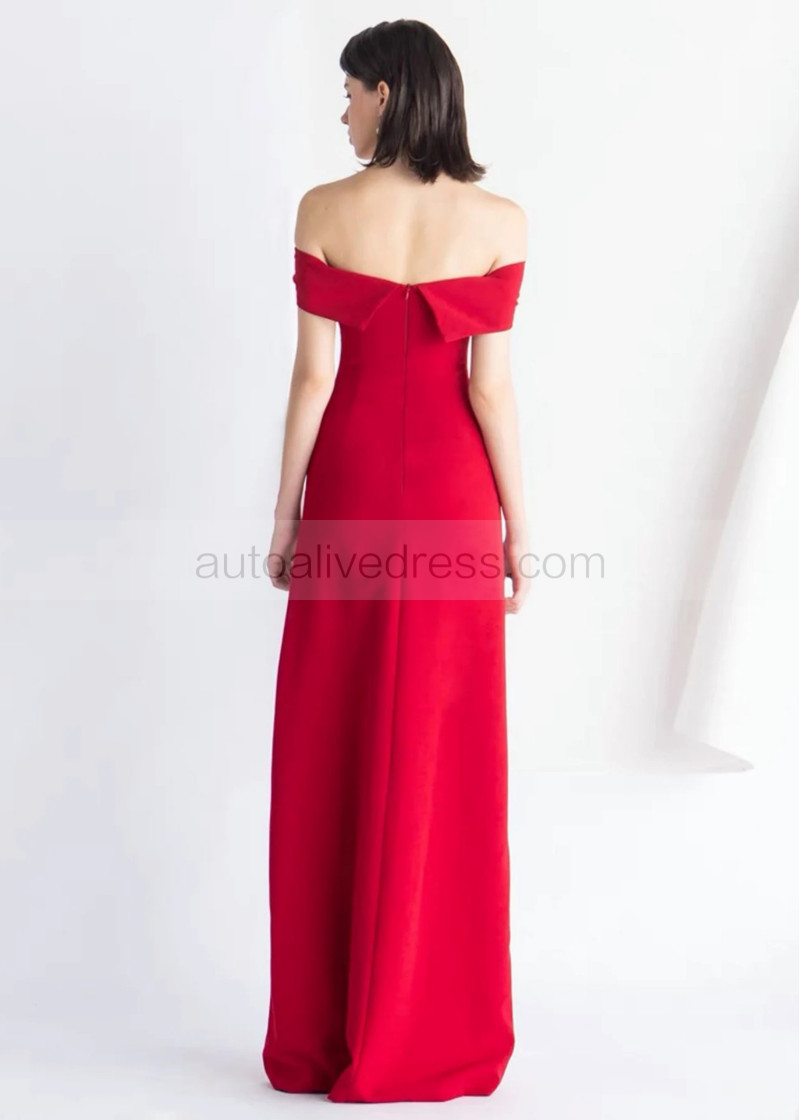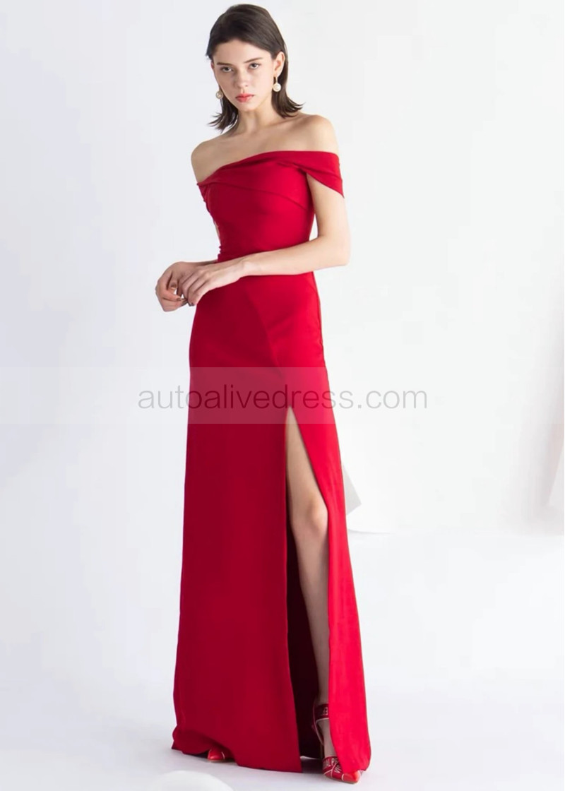 Red Stretchable Satin Thigh Slit Prom Dress
