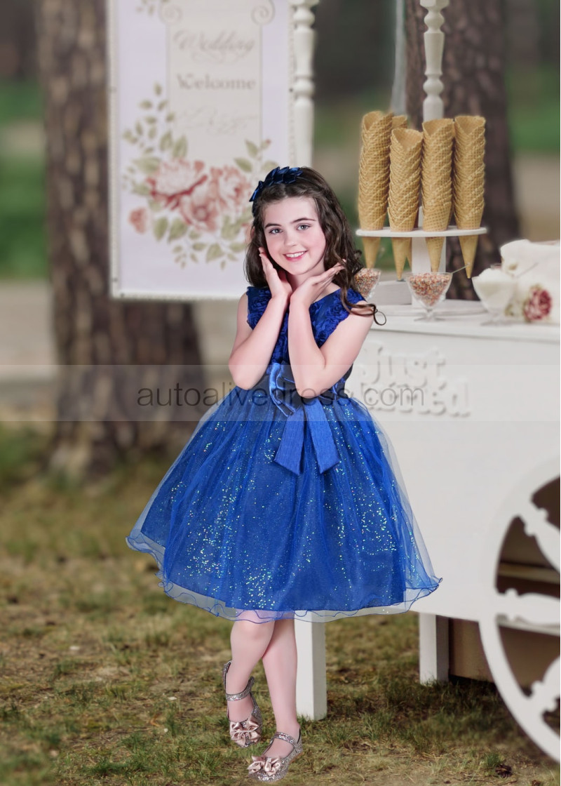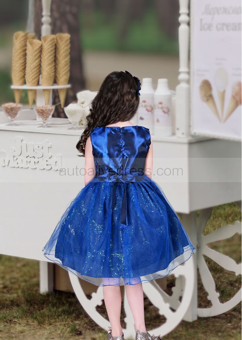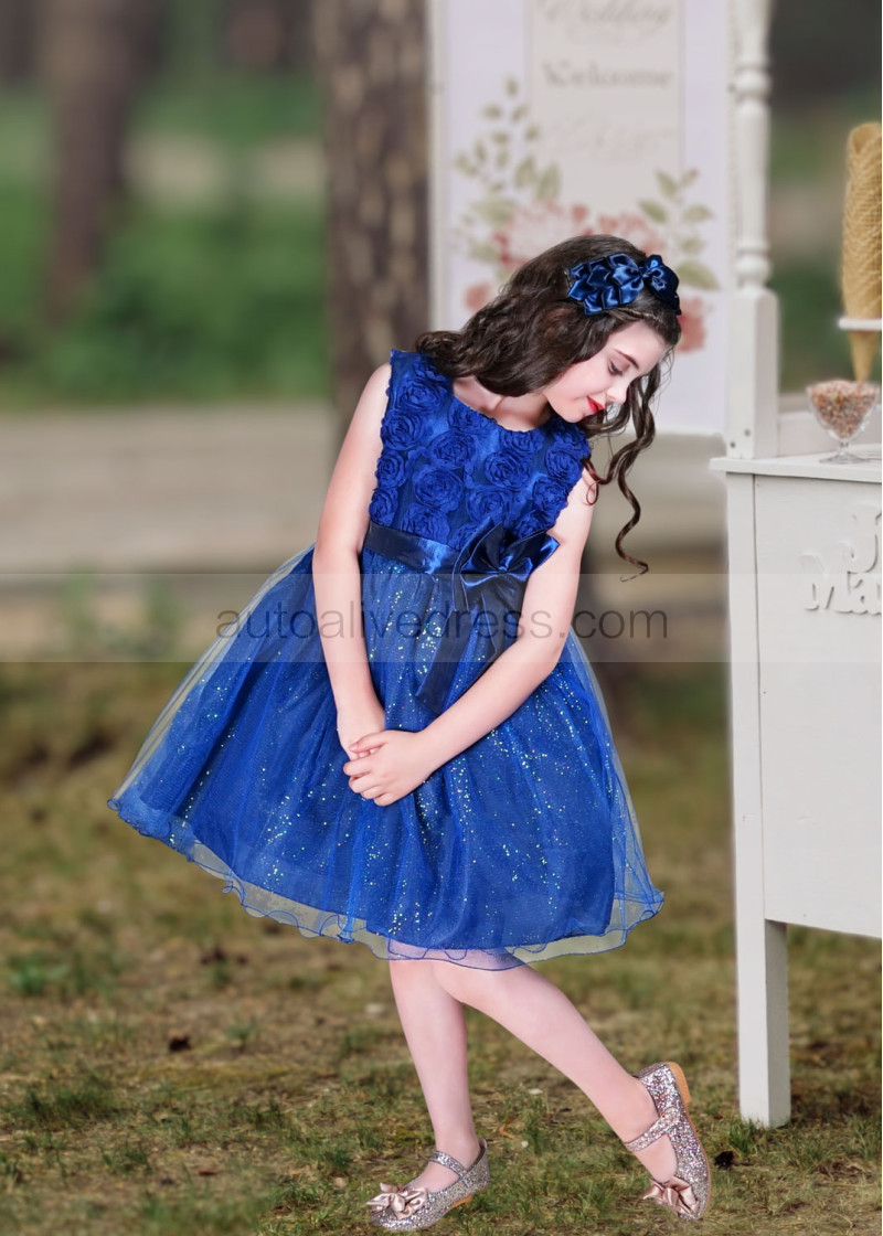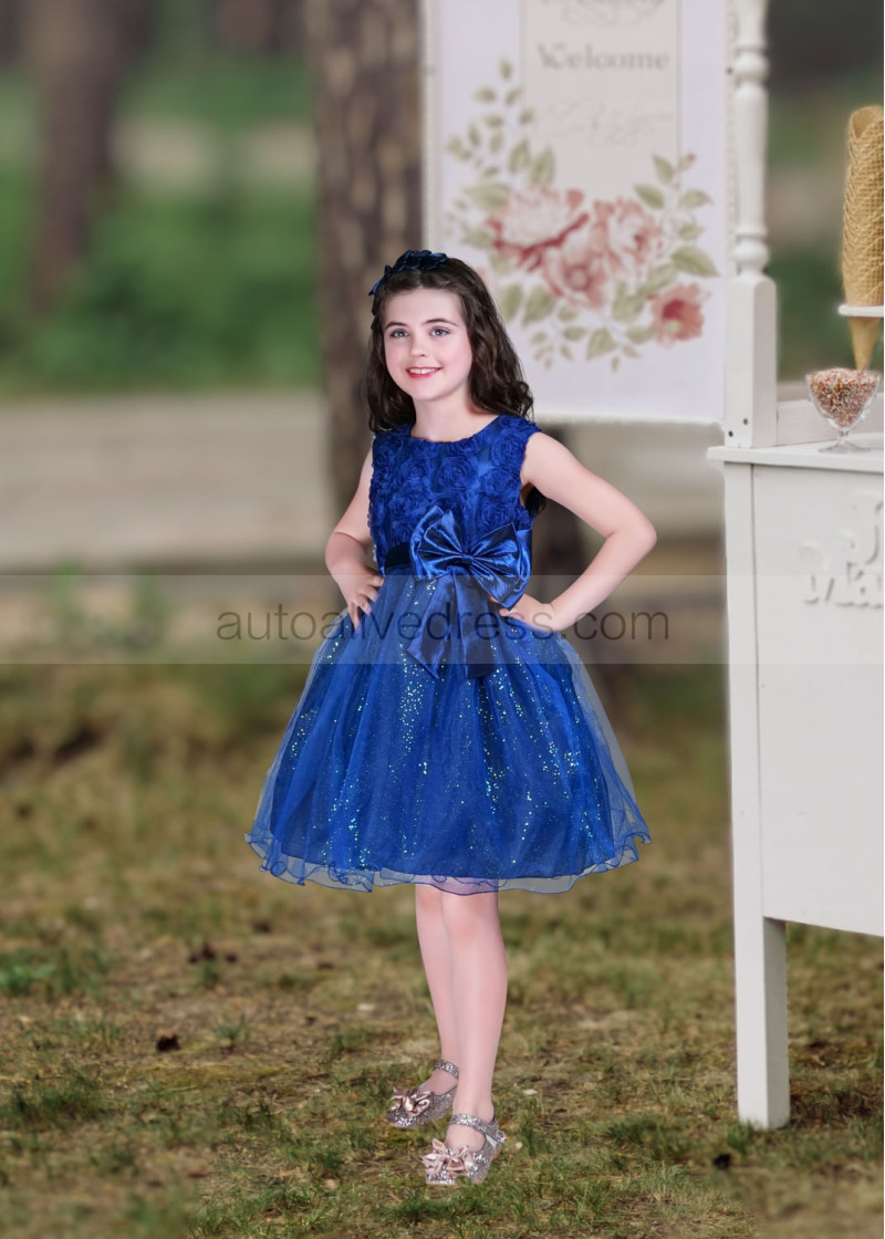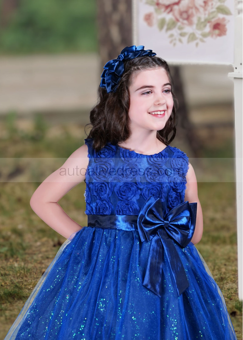 Royal Blue Rosette Organza Sparkly Flower Girl Dress