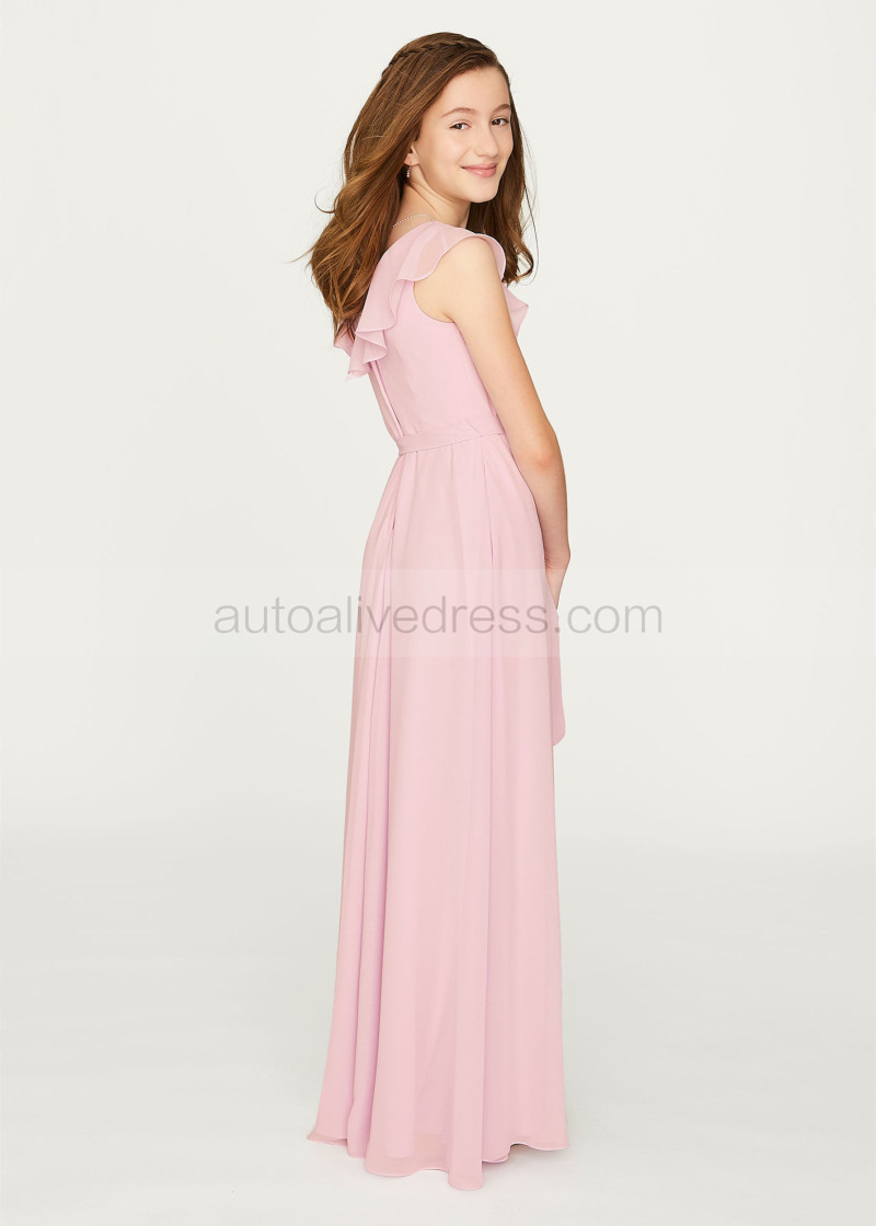 Ruffled V Neck Blush Chiffon Junior Bridesmaid Dress