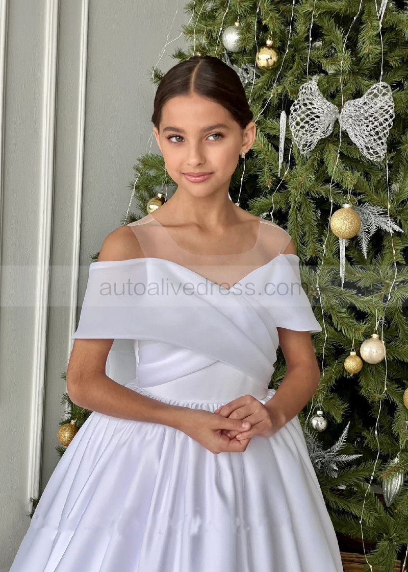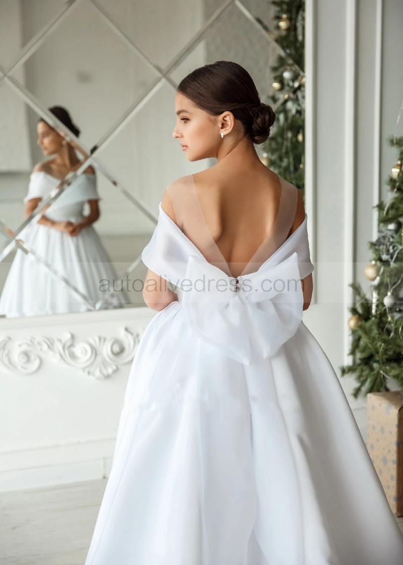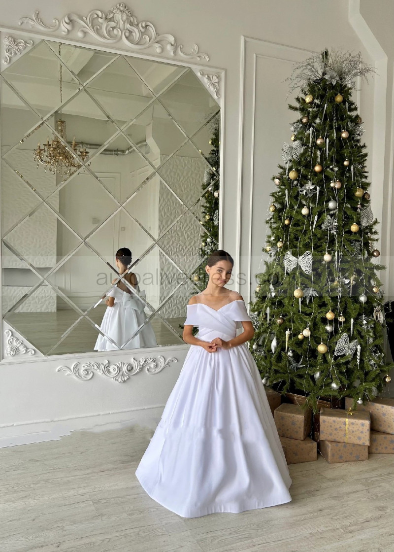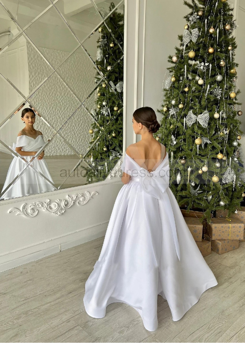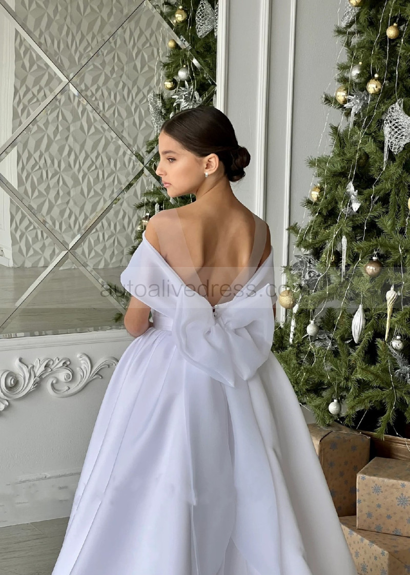 Satin Organza V Back Flower Girl Dress Baptism Dress