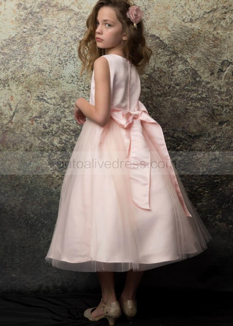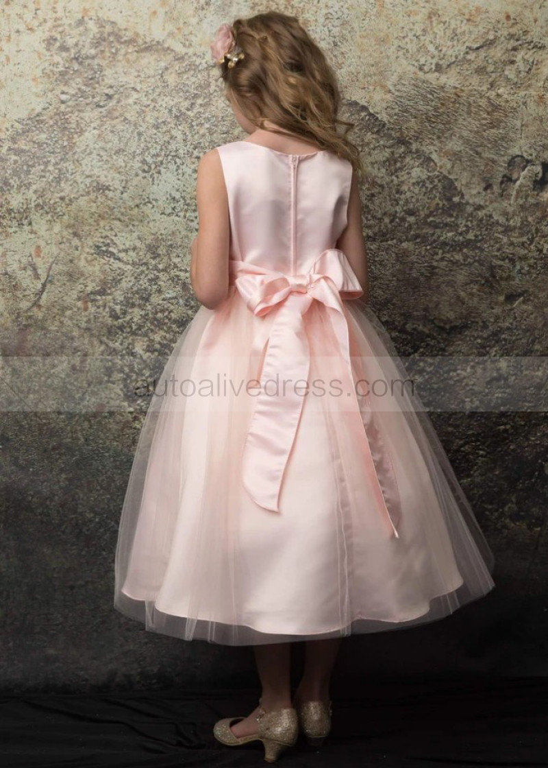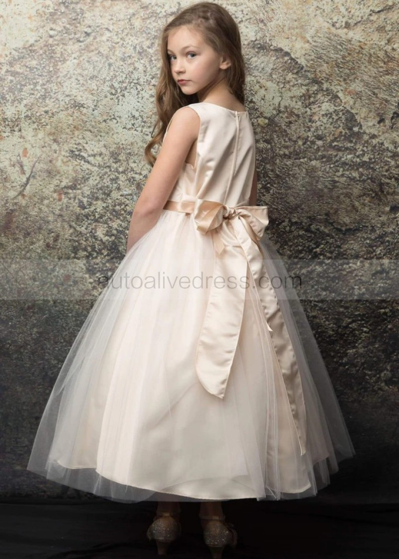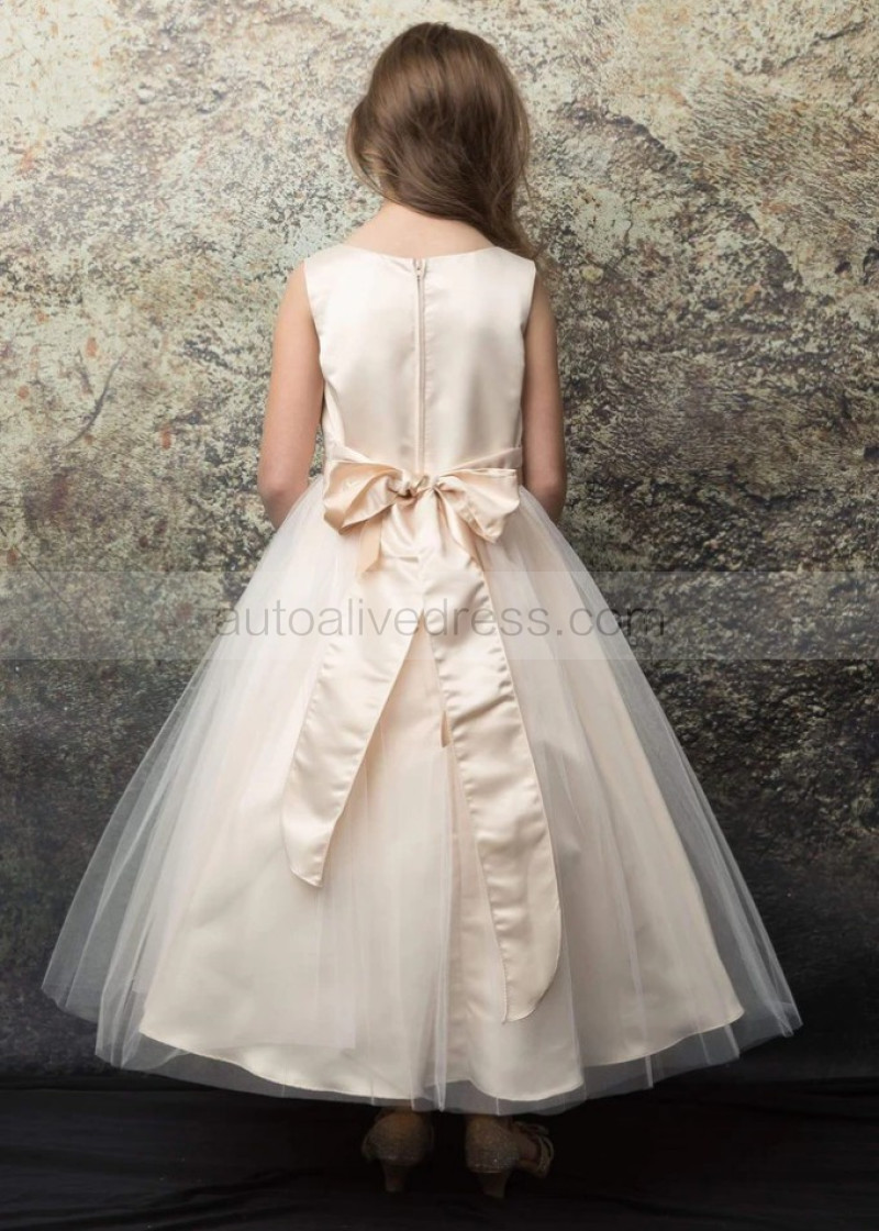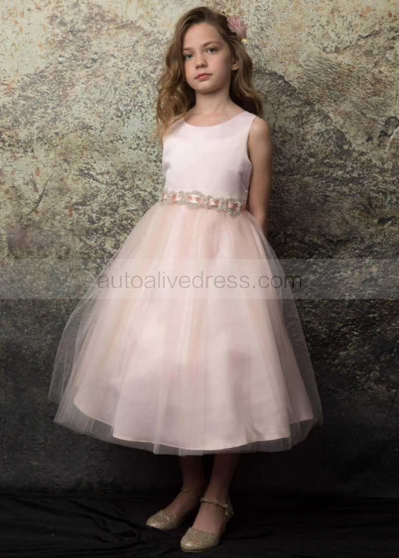 Satin Tulle Flower Girl Dress With Rhinestone Belt
