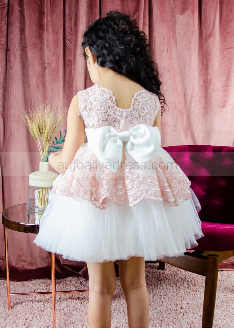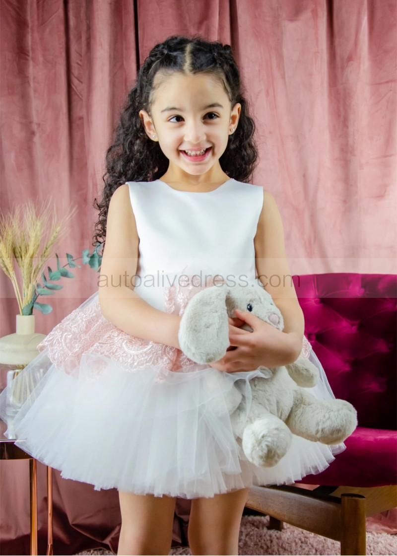 Satin Tulle Peplum Lace Flower Girl Dress
