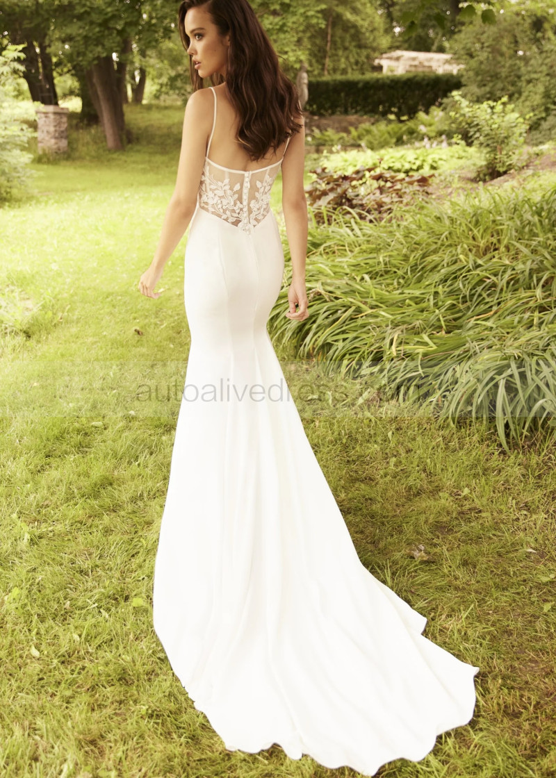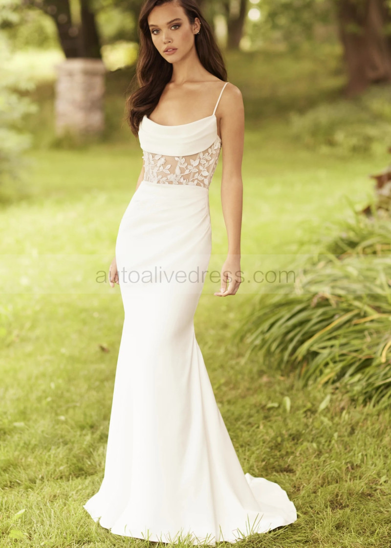Scoop Neck Ivory Satin Lace Elegant Wedding Dress