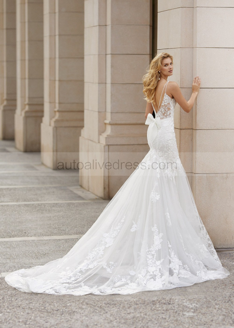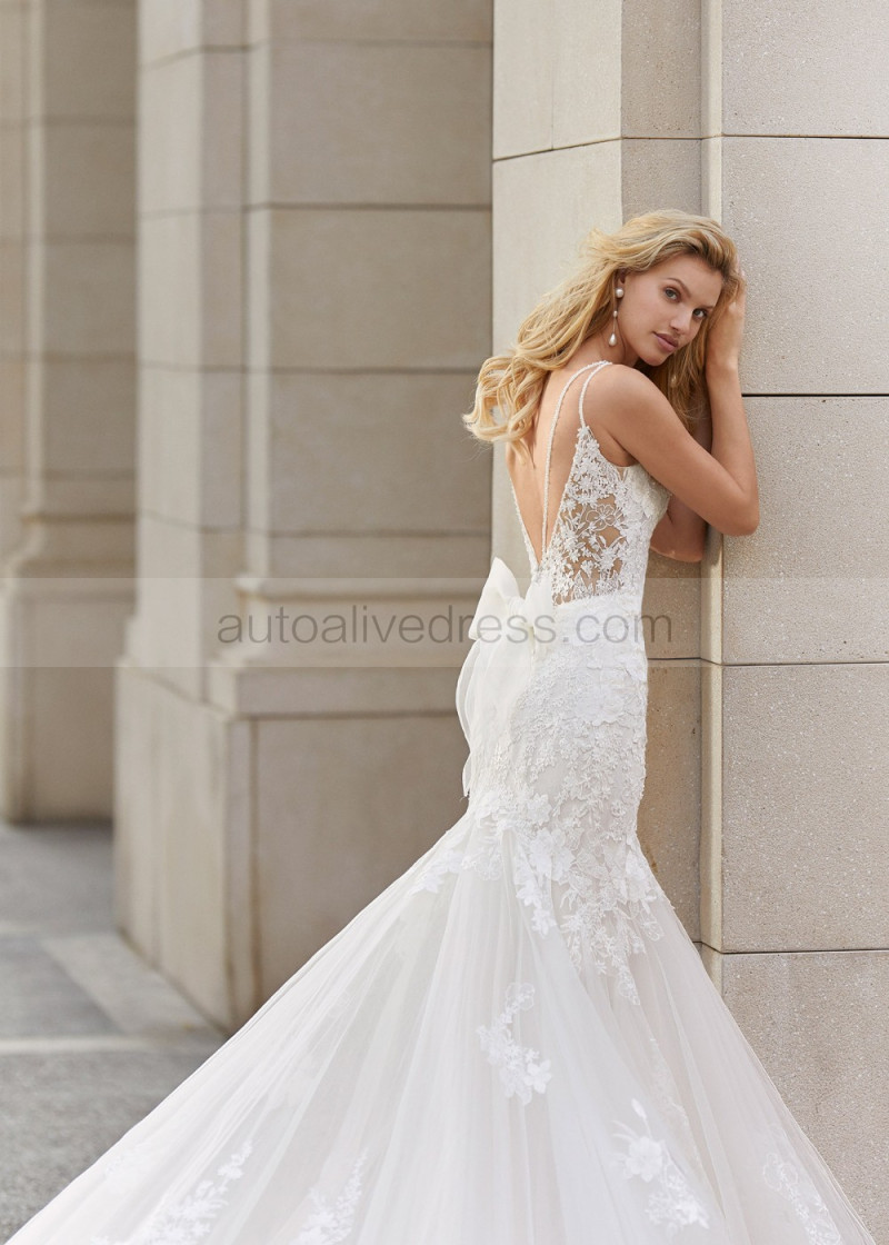 Sexy Beaded Ivory Lace Tulle V Back Wedding Dress