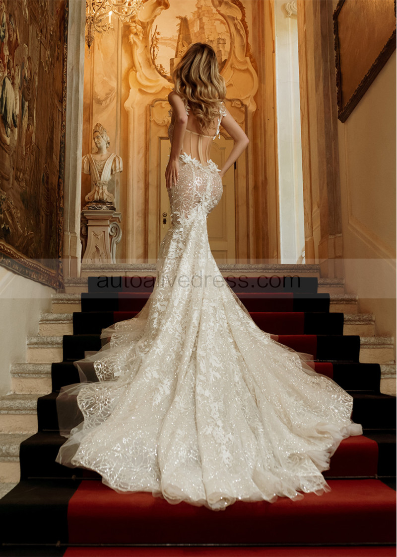 Sexy Ivory Lace Tulle Glitter Wedding Dress