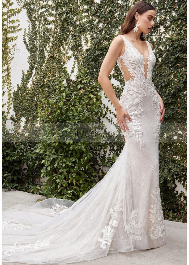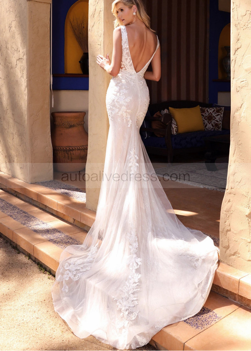 Sexy Ivory Lace Tulle Long Train Wedding Dress