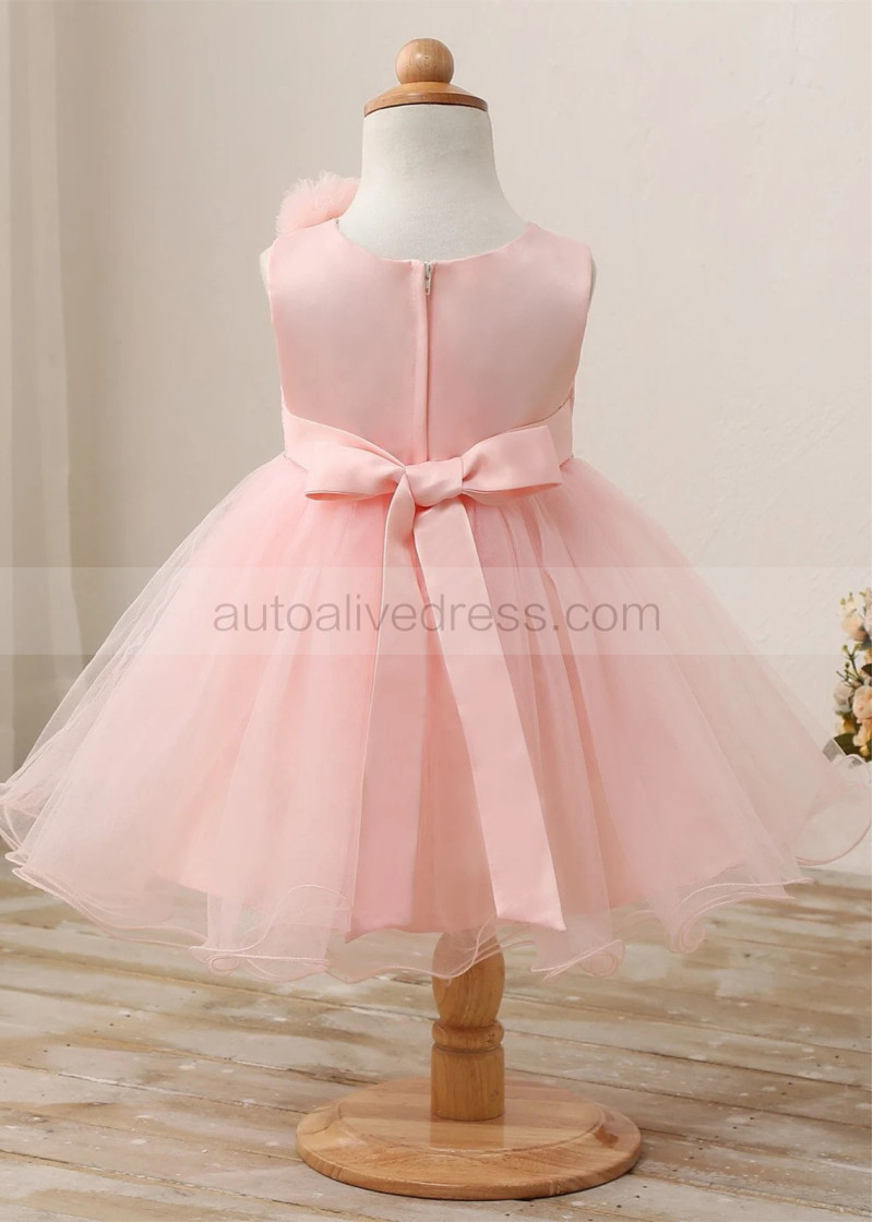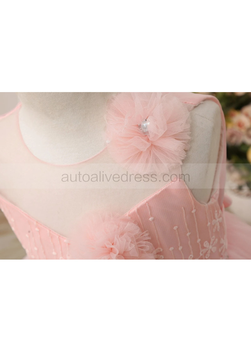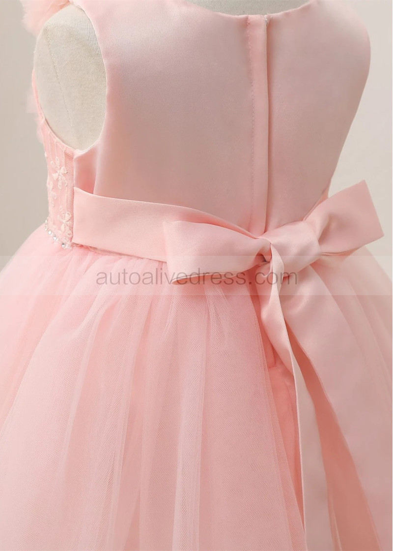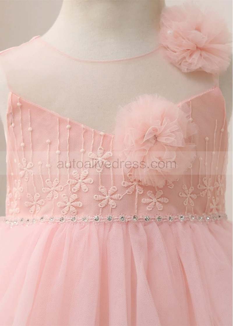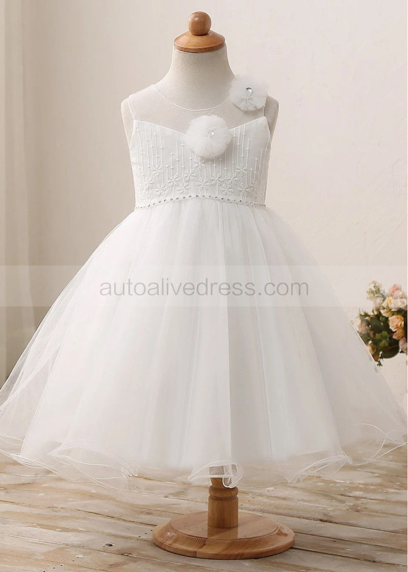 Sleeveless Lace Tulle Curly Hem Beaded Flower Girl Dress