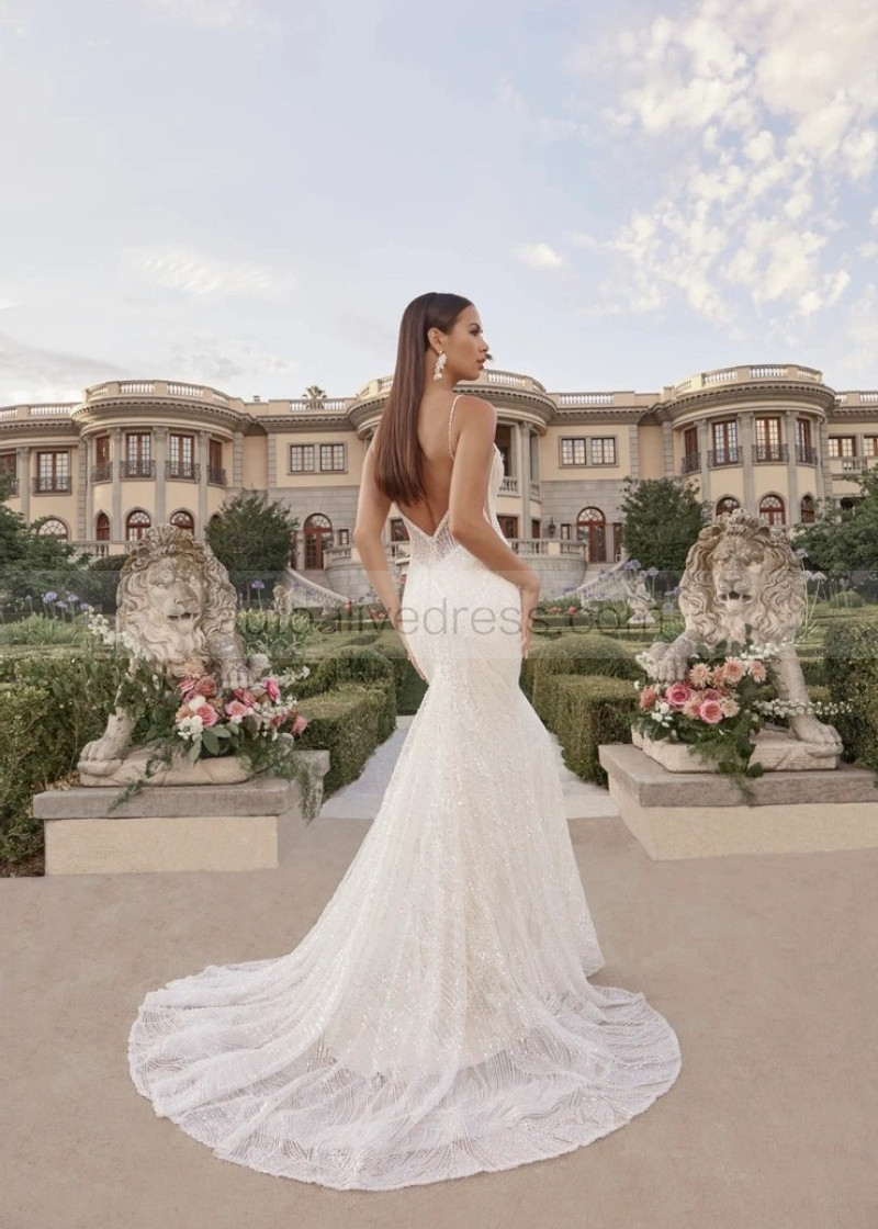 Spaghetti Straps Beaded Ivory Lace Sequins Wedding Dress