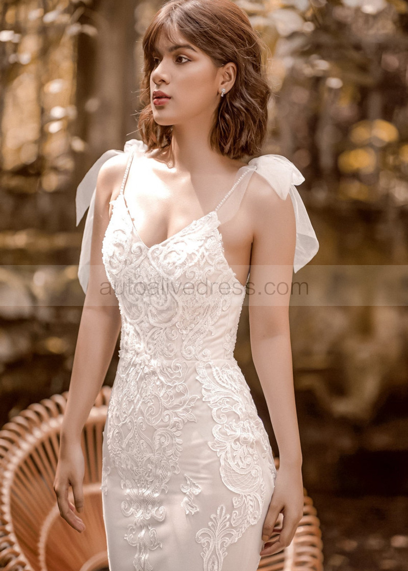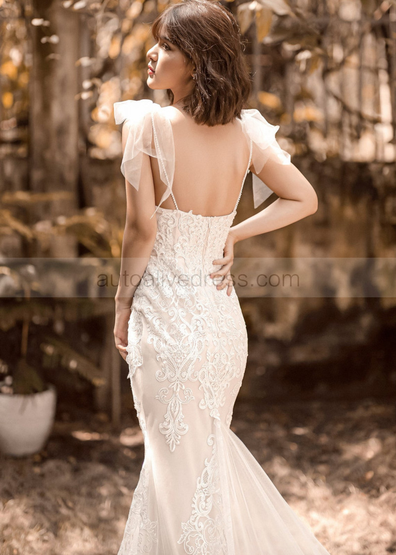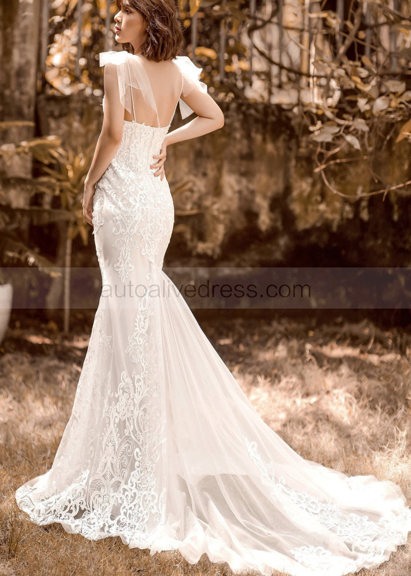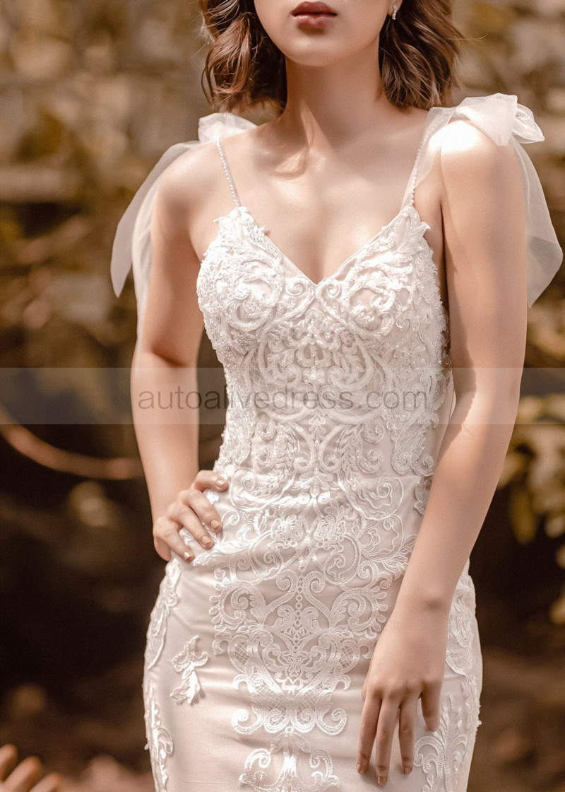 Spaghetti Straps Beaded Ivory Lace Tulle Wedding Dress
