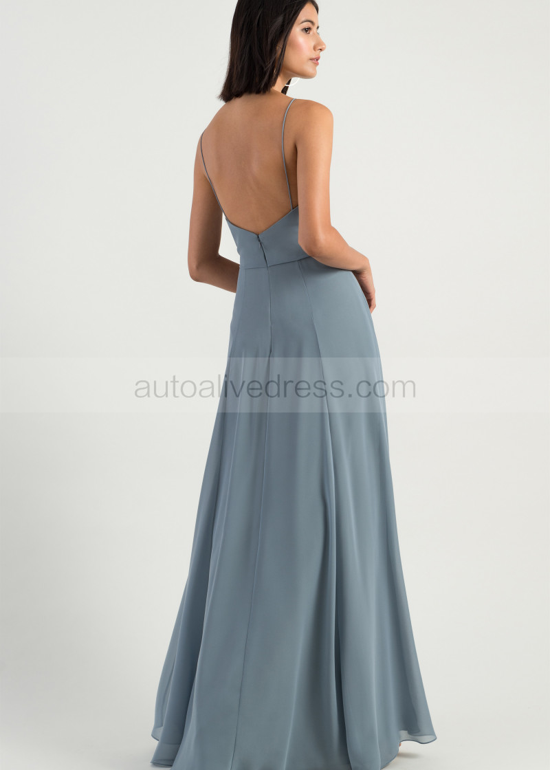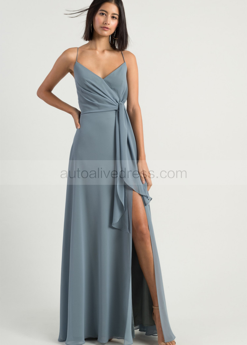 Spaghetti Straps Dusty Blue Chiffon Slit Bridesmaid Dress