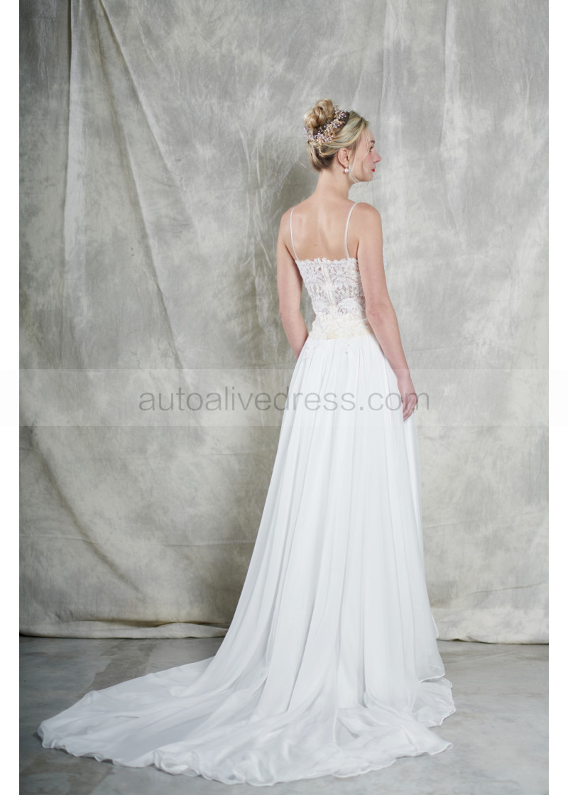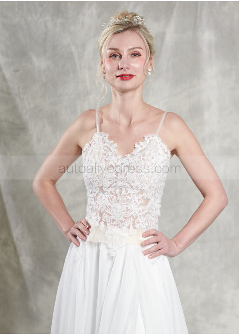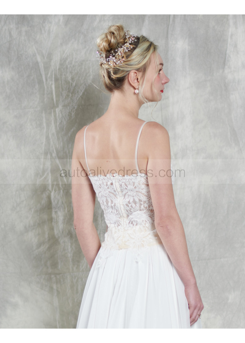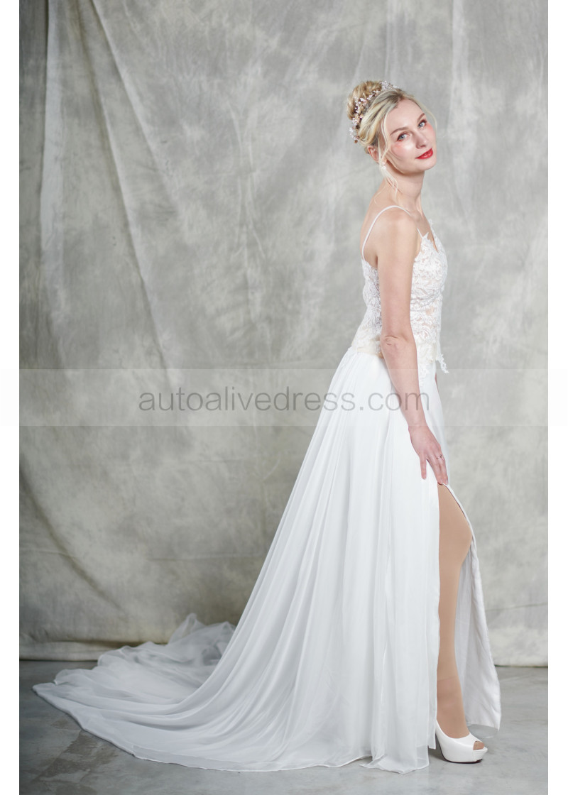 Spaghetti Straps Ivory Lace Chiffon Split Wedding Dress