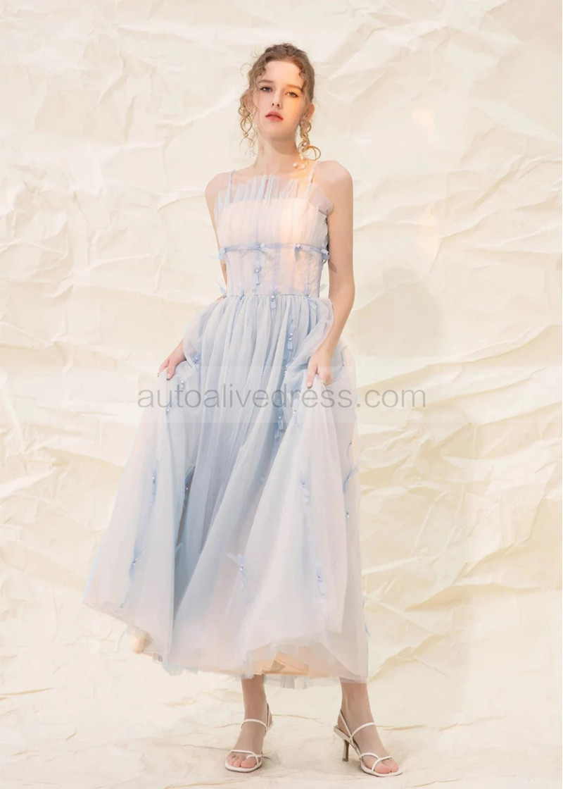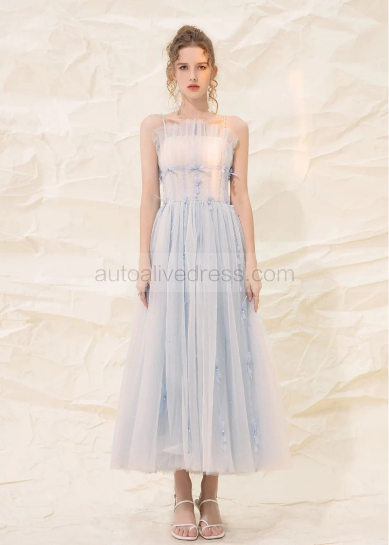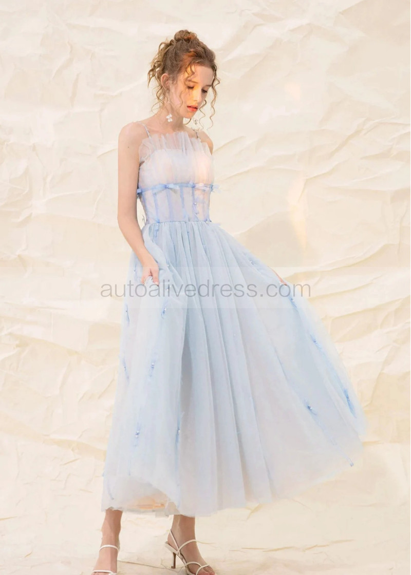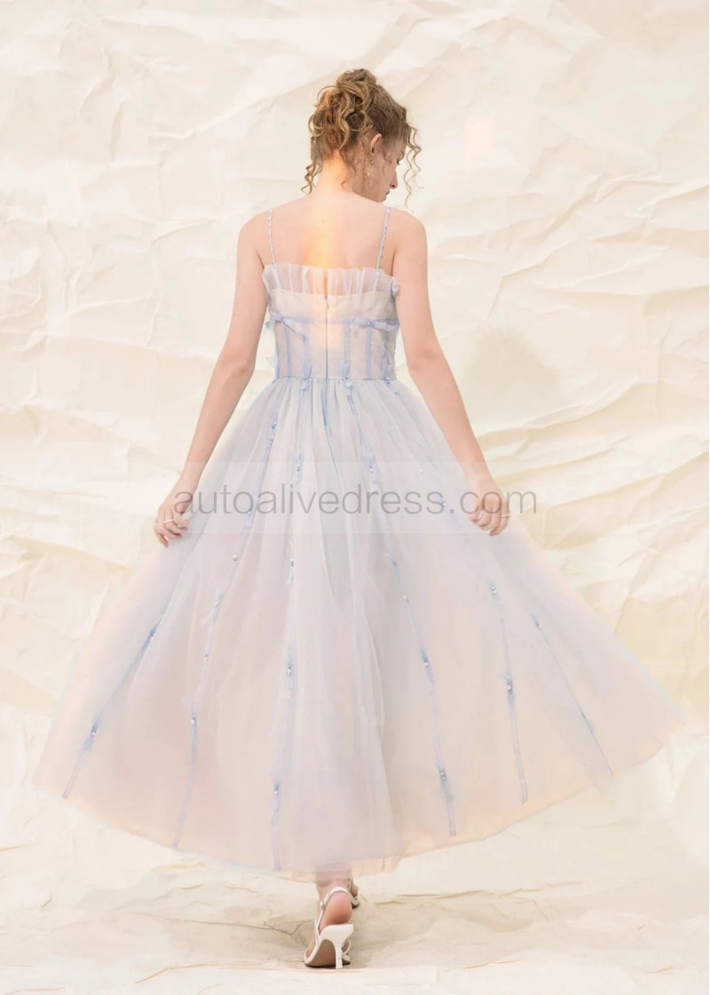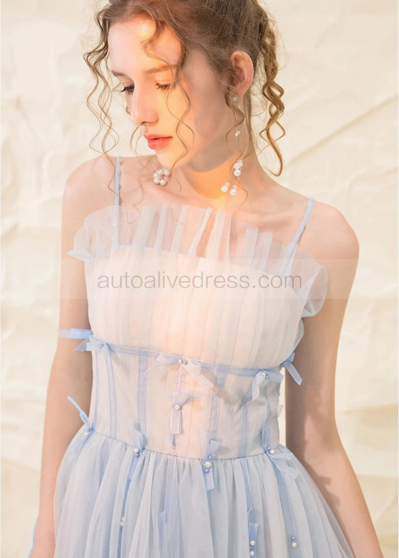 Spaghetti Straps Light Blue Tulle Dreamy Prom Dress