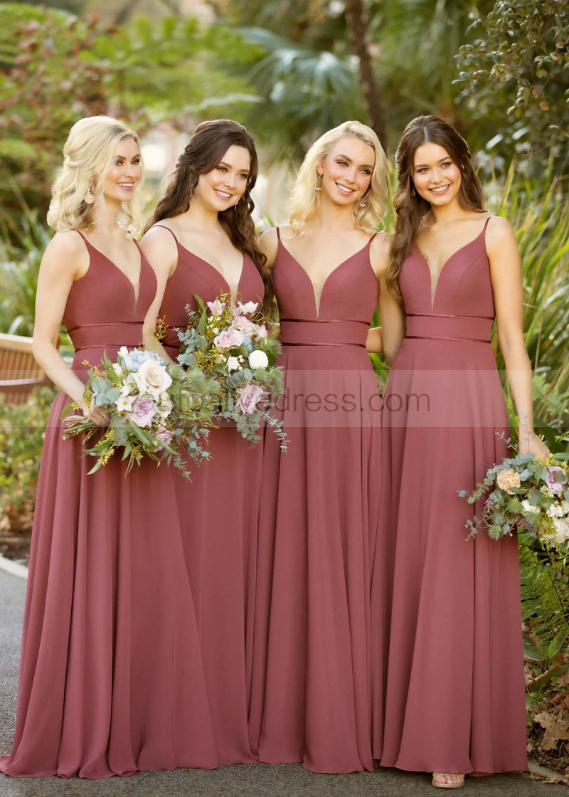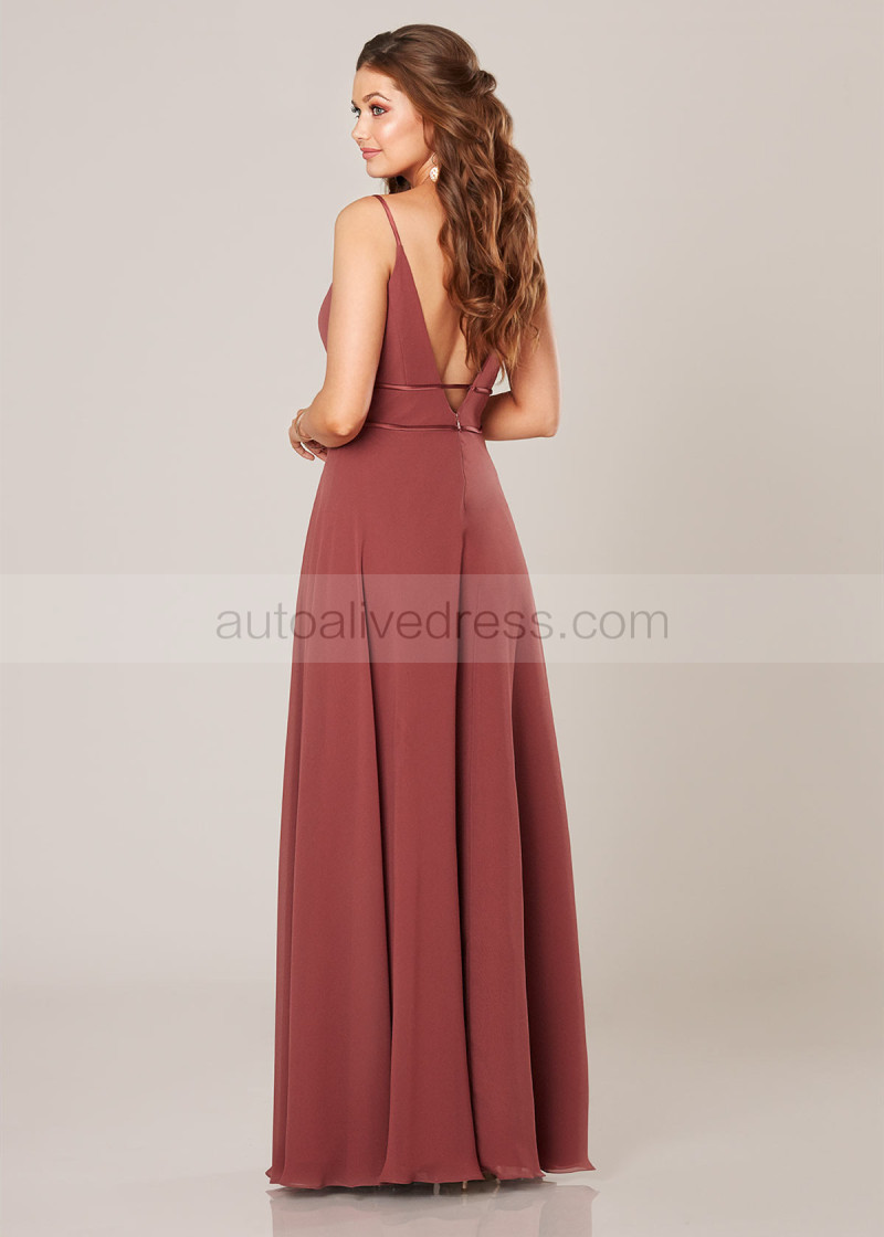 Spaghetti Straps Sangria Chiffon V Back Bridesmaid Dress