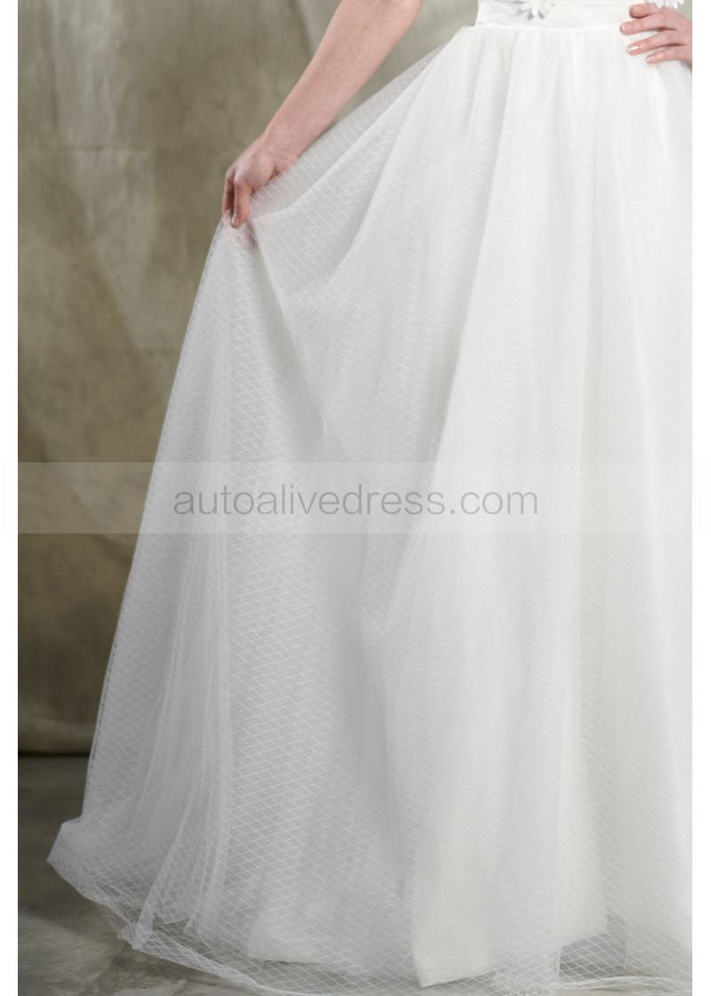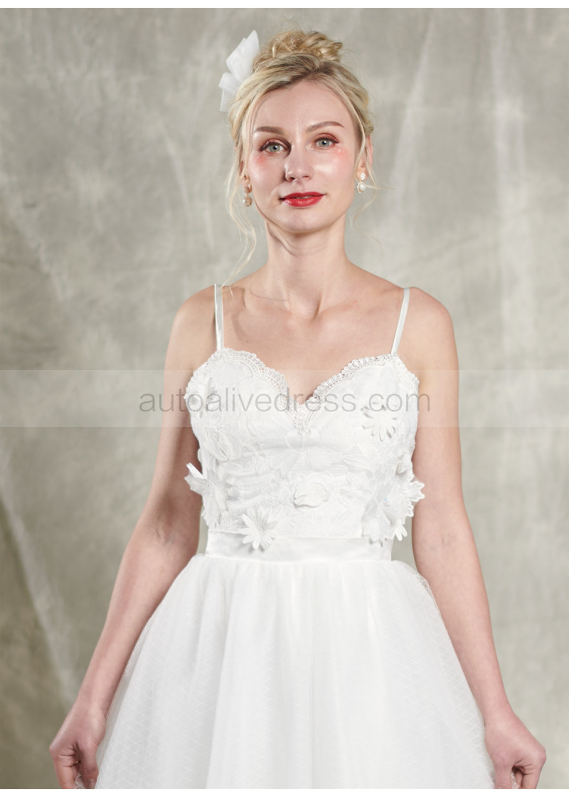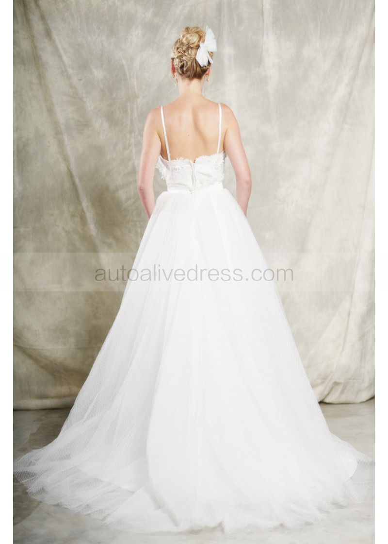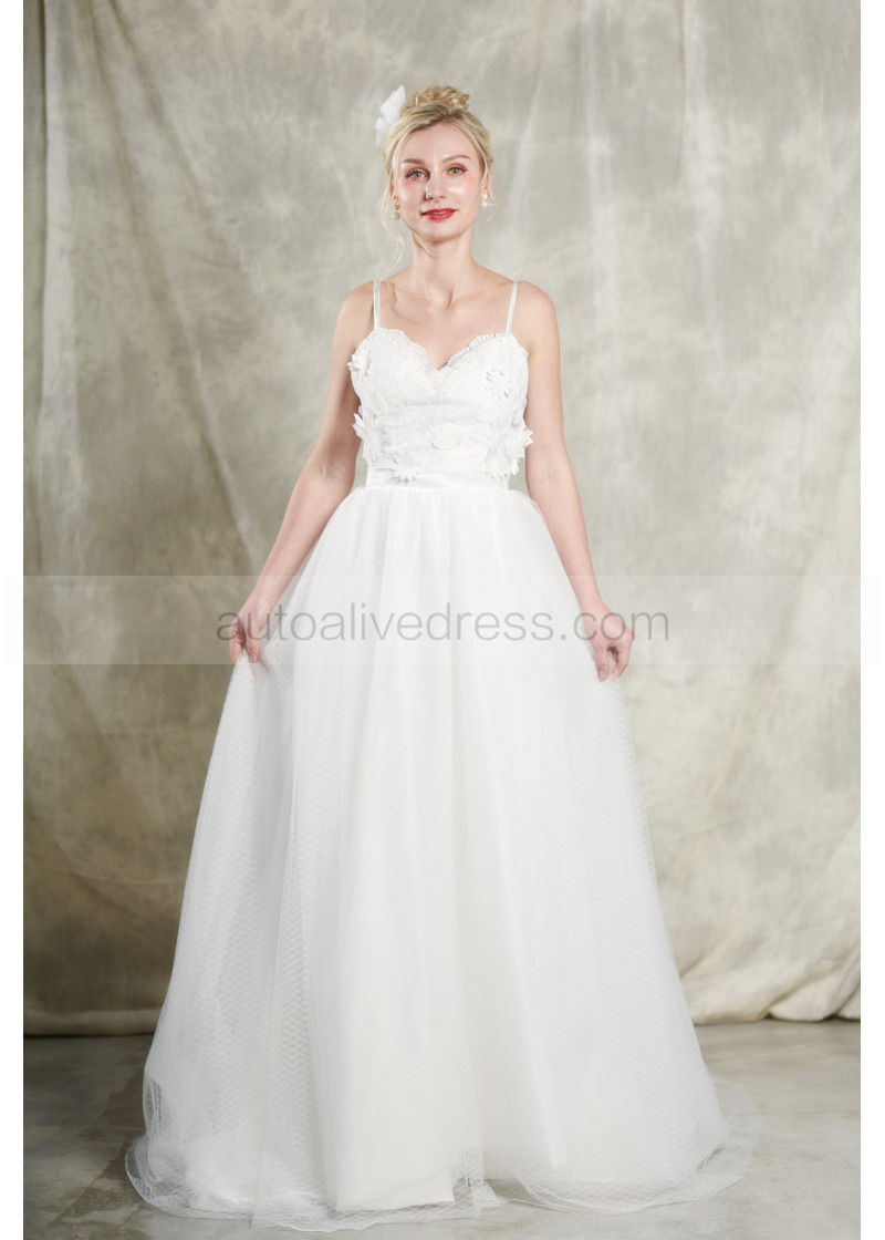 Spaghetti Straps Sweetheart Neck Ivory Lace Tulle Wedding Dress