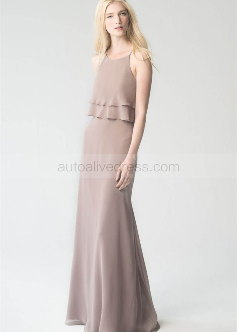 Spaghetti Straps Wisteria Chiffon Long Bridesmaid Dress