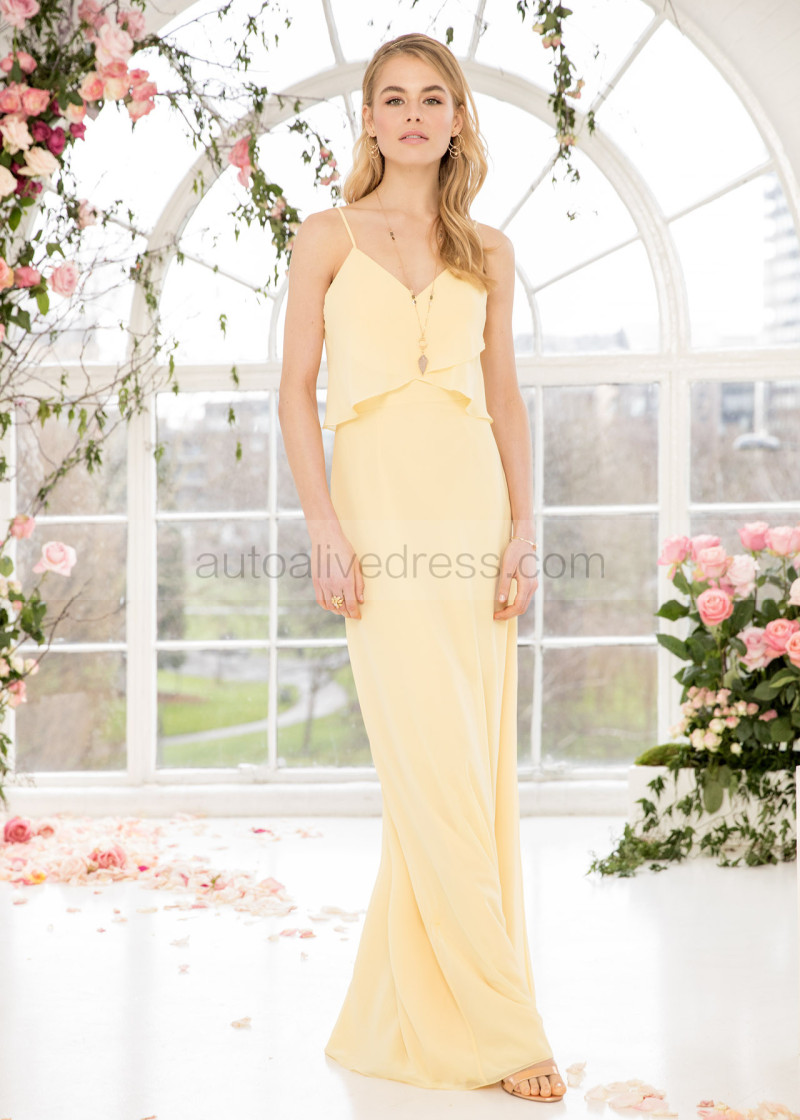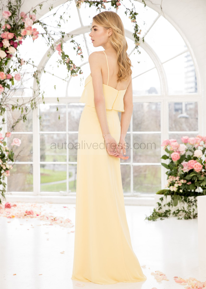 Spaghetti Straps Yellow Chiffon Bridesmaid Dress