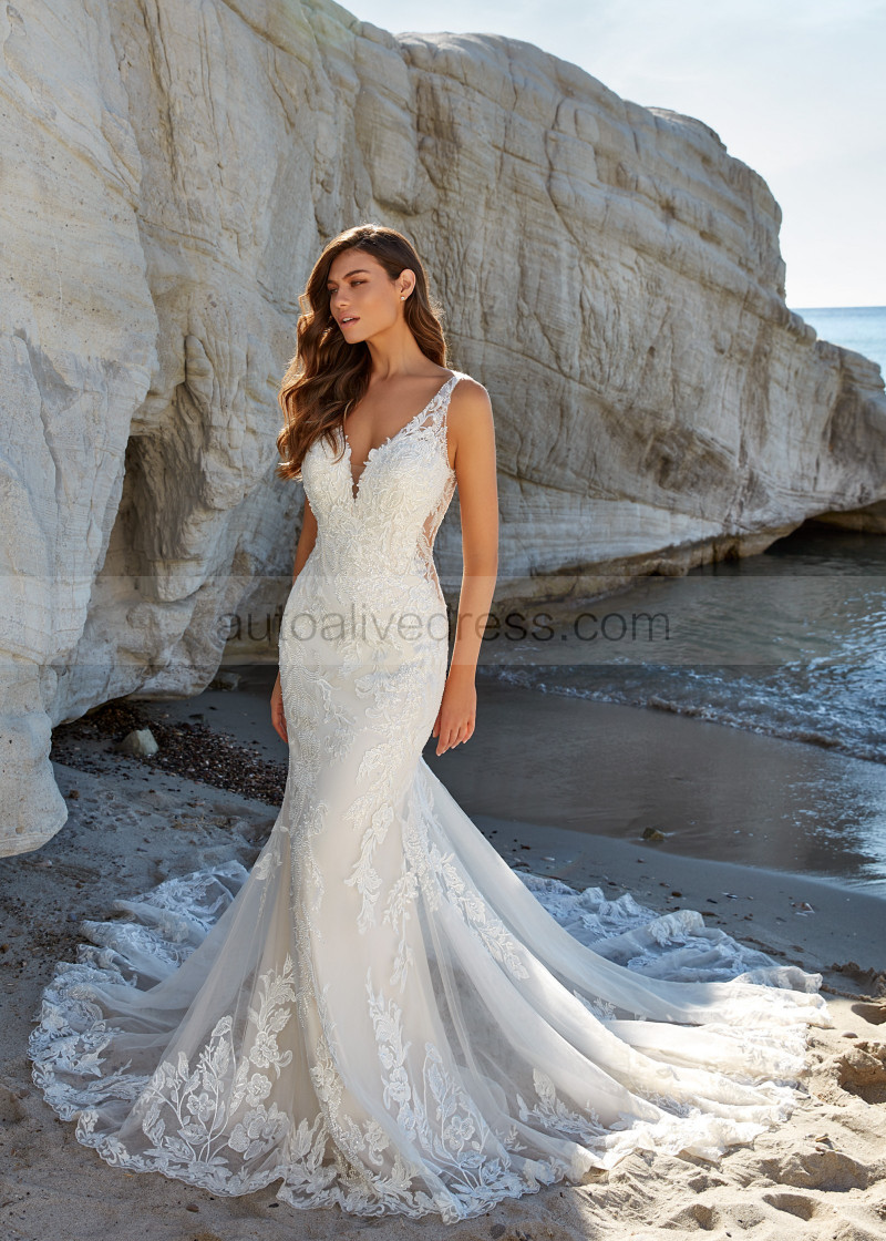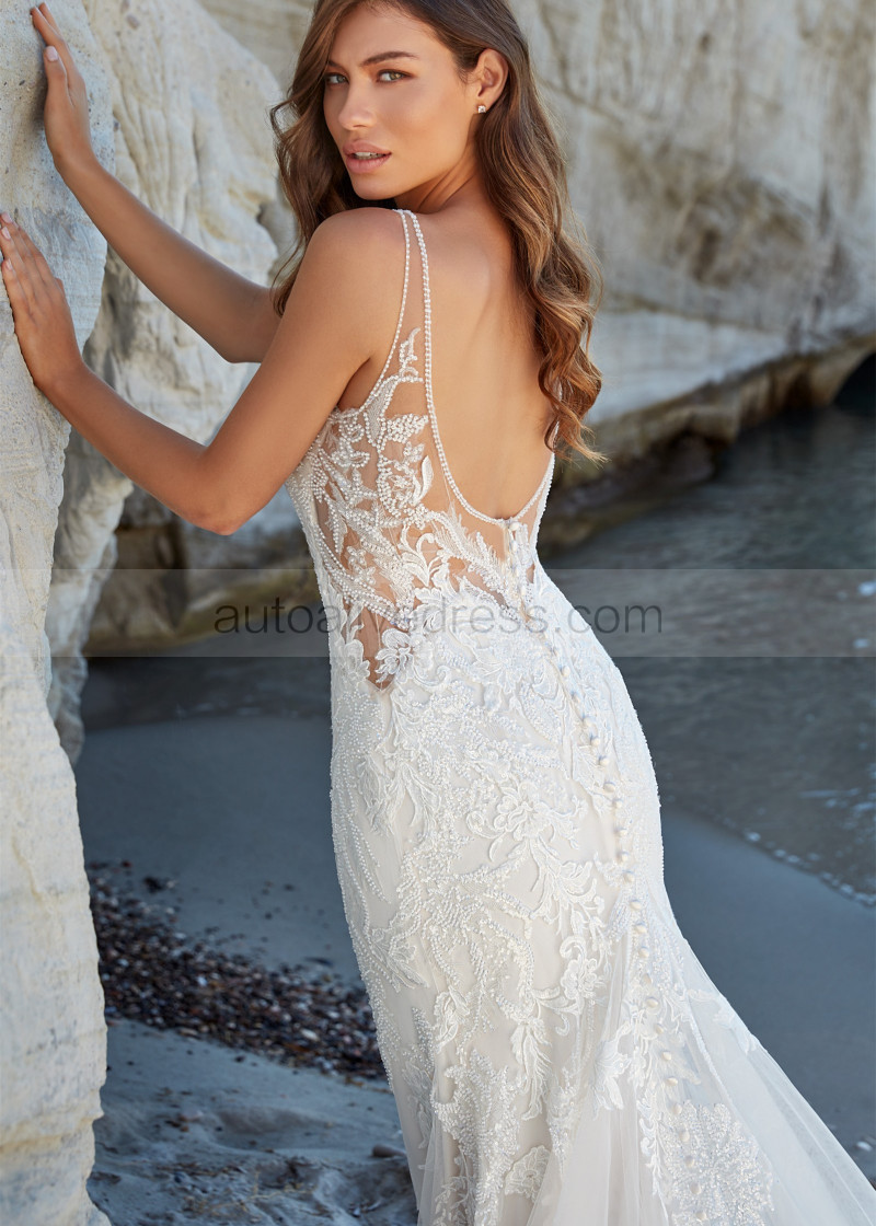 Sparkle Beaded Embroidery Lace Tulle Fit-n-flare Wedding Dress
