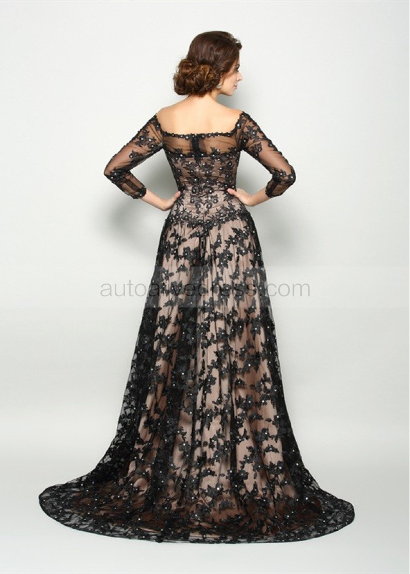 Square Neck Beaded Black Lace Tulle Mother Of The Bride Dress