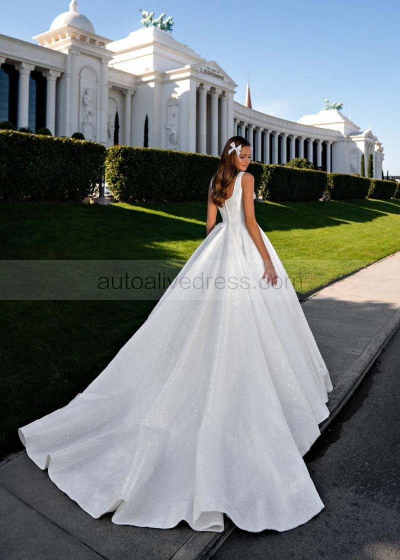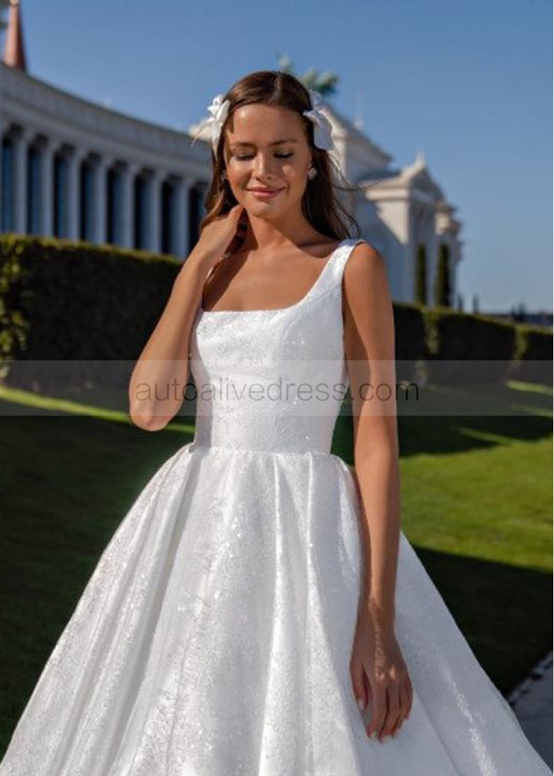 Square Neck Ivory Satin Lace Simple Wedding Dress