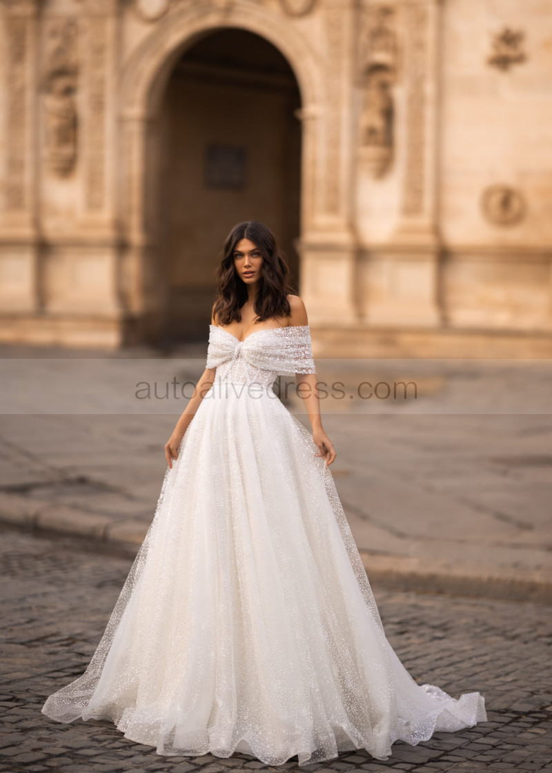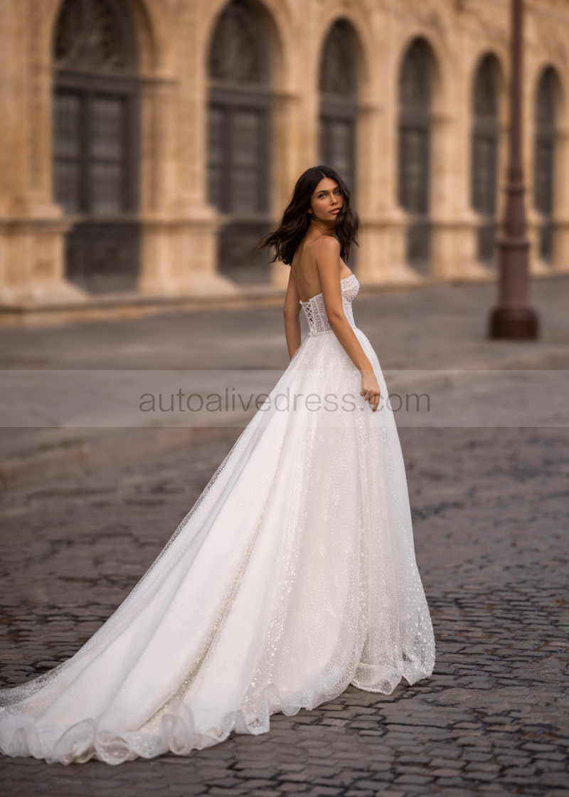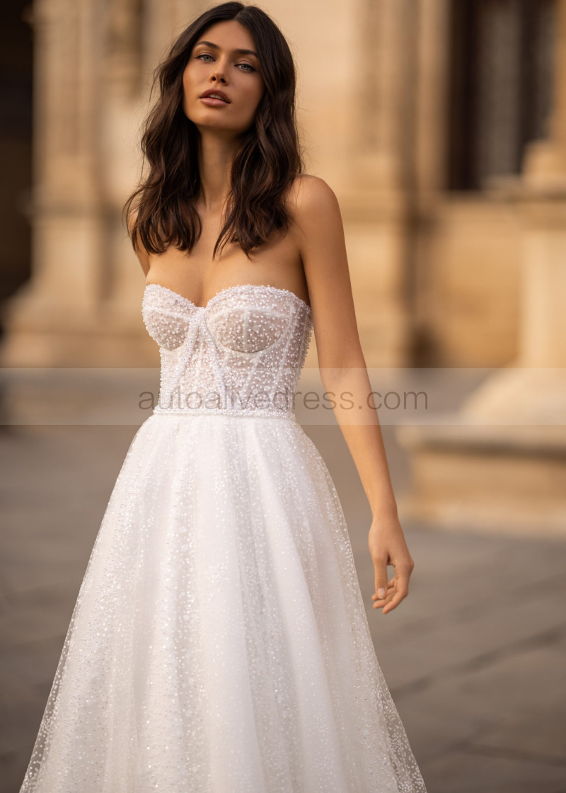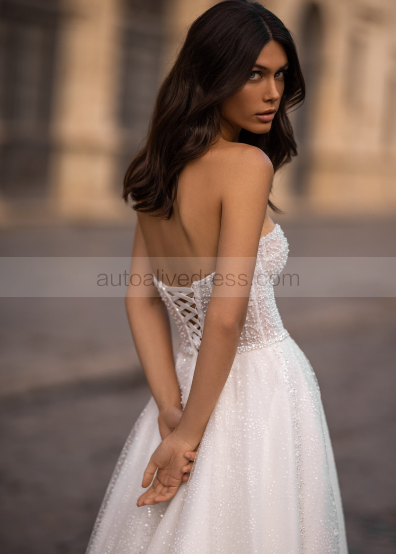 Strapless Beaded Ivory Lace Tulle Timeless Wedding Dress
