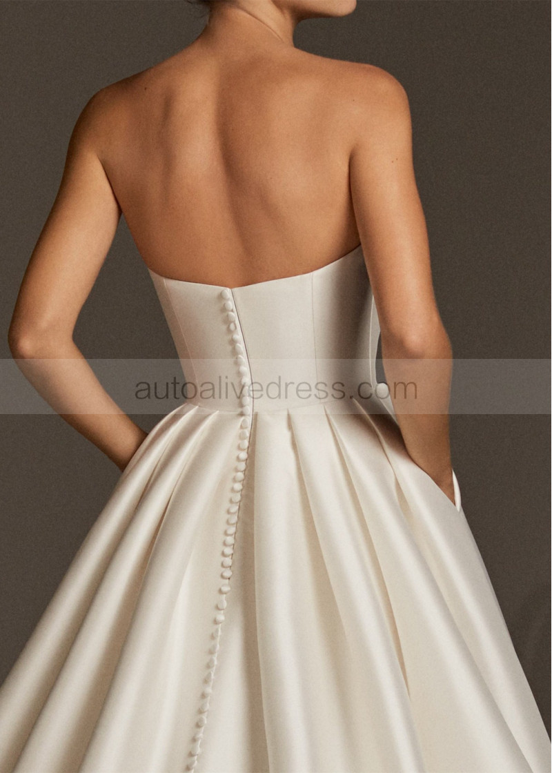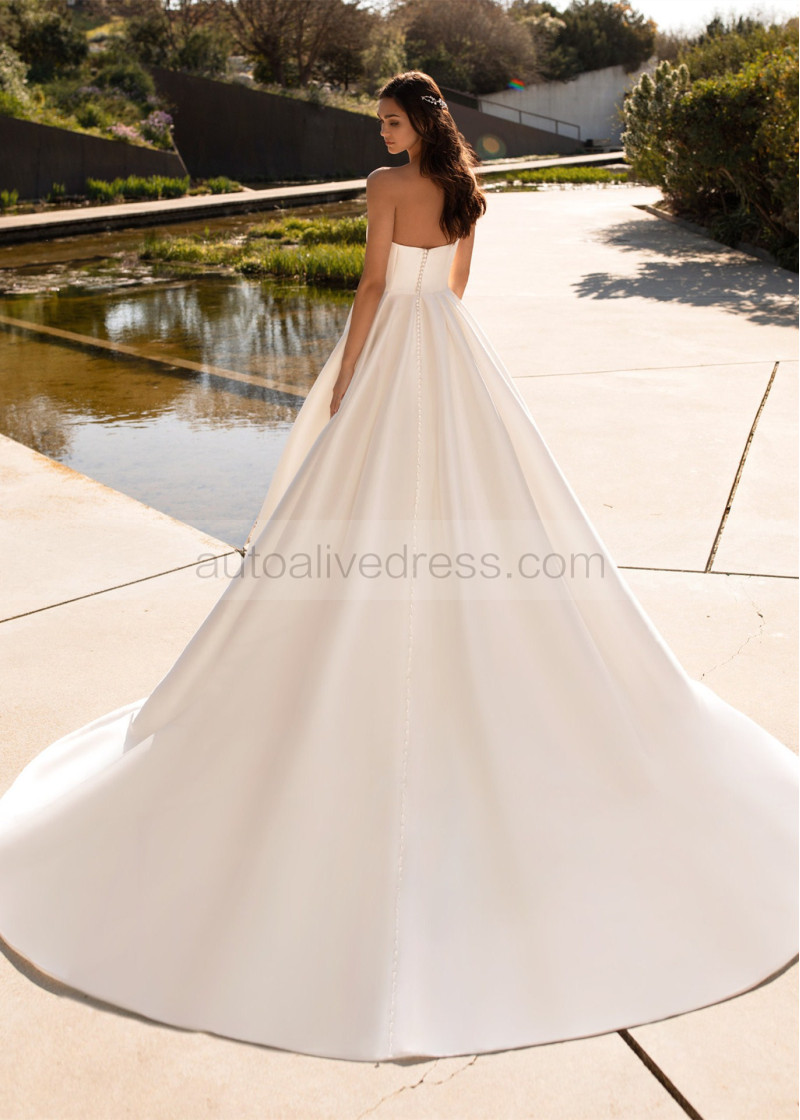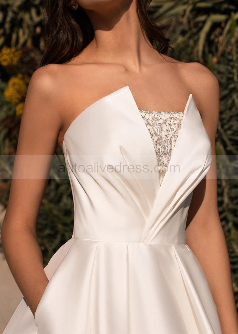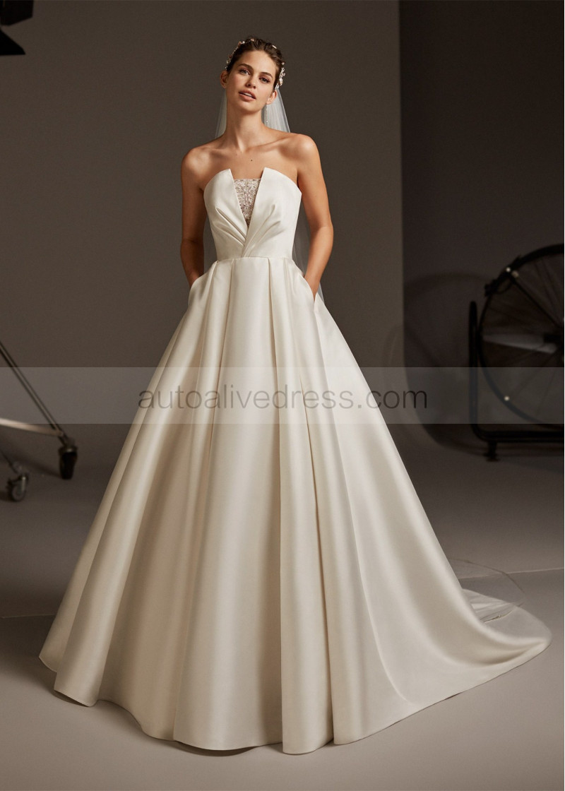 Strapless Beaded Ivory Satin Wedding Dress