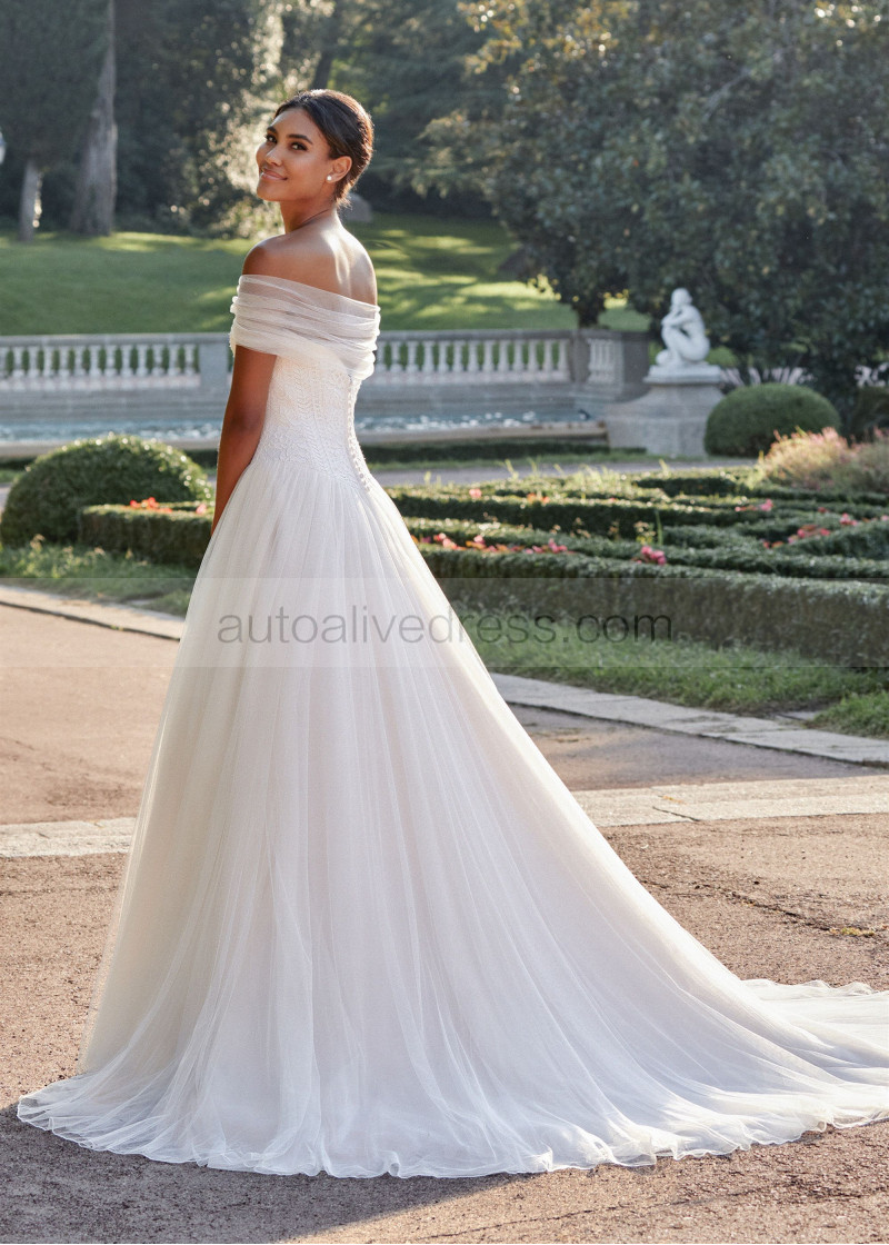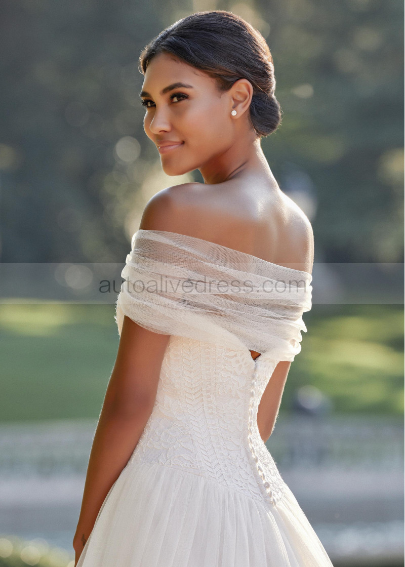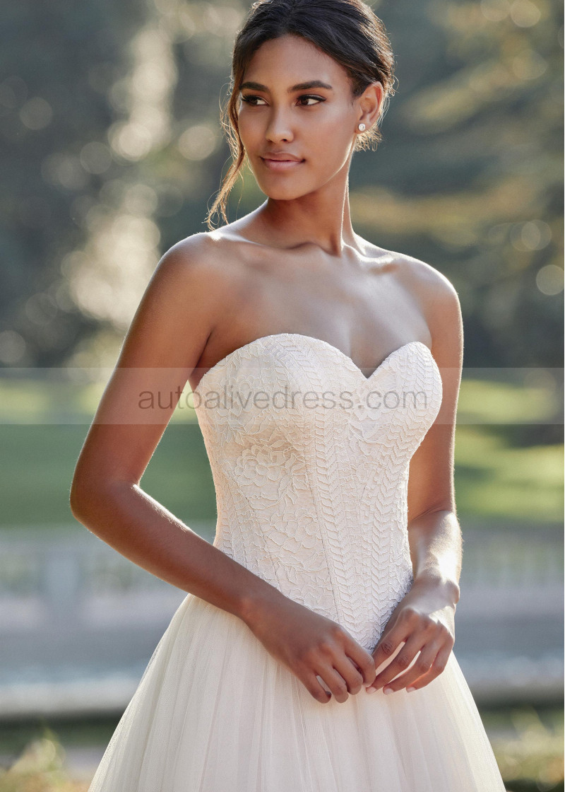Strapless Ivory Lace Tulle Wedding Dress With Detchable Cape