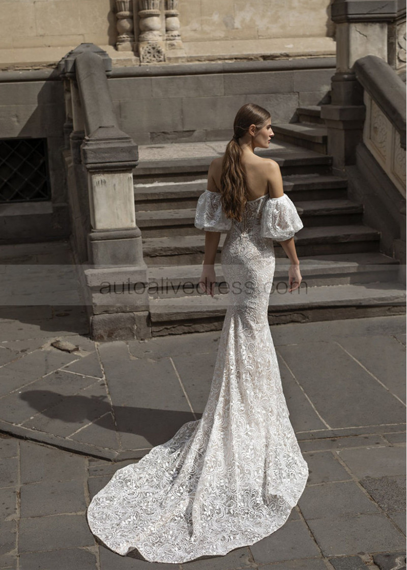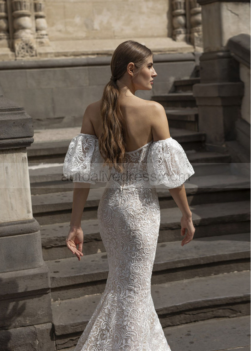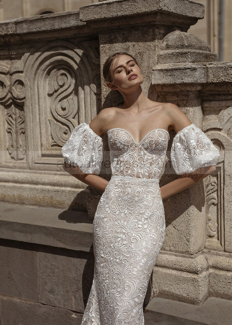 Strapless Ivory Lace Wedding Dress With Detachable Sleeves