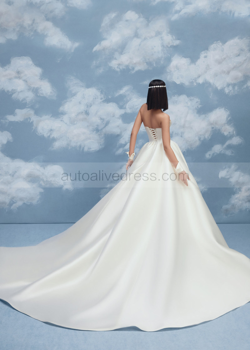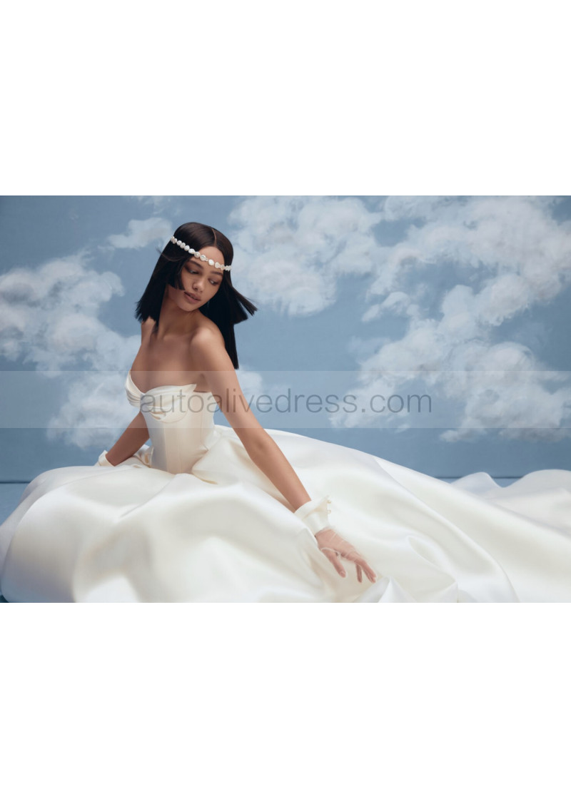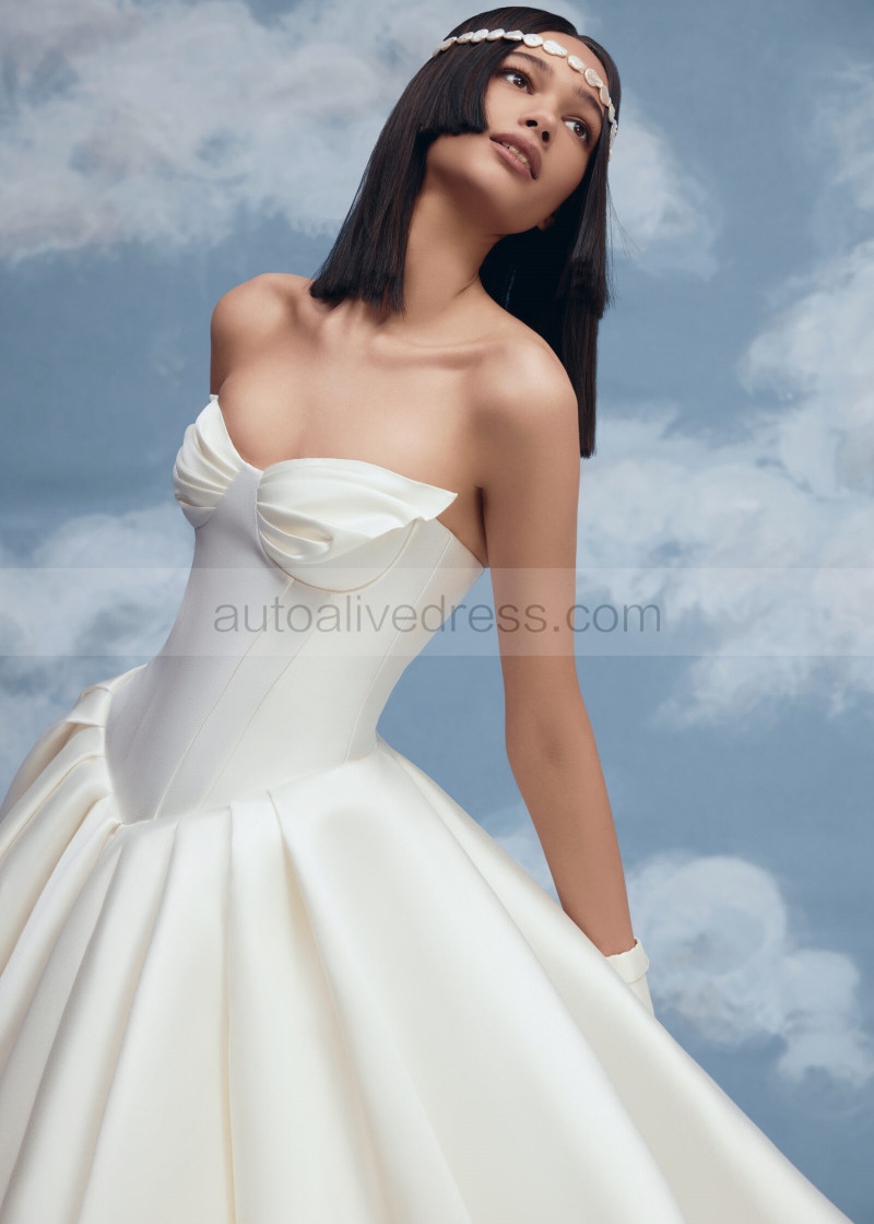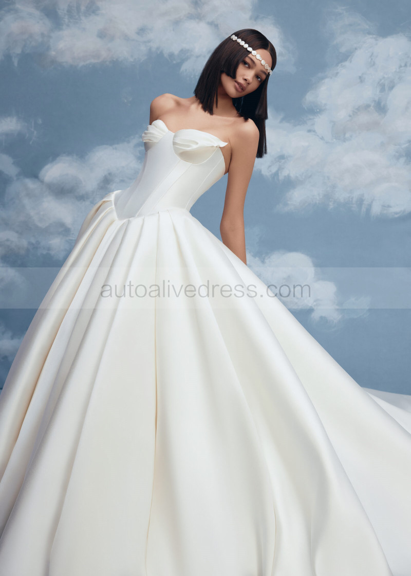 Strapless Ivory Pleated Satin Corset Back Timeless Wedding Dress