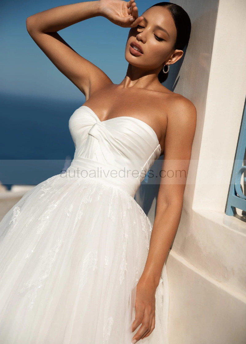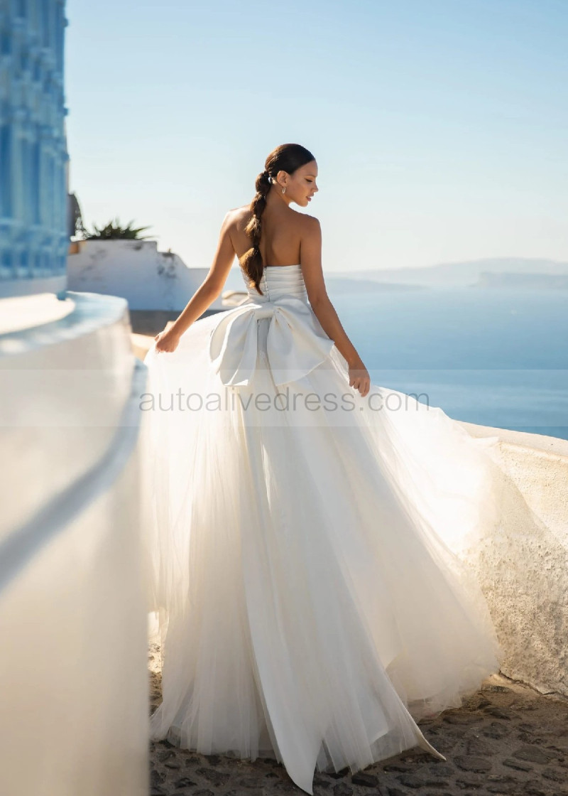 Strapless Ivory Pleated Satin Tulle Unusual Wedding Dress