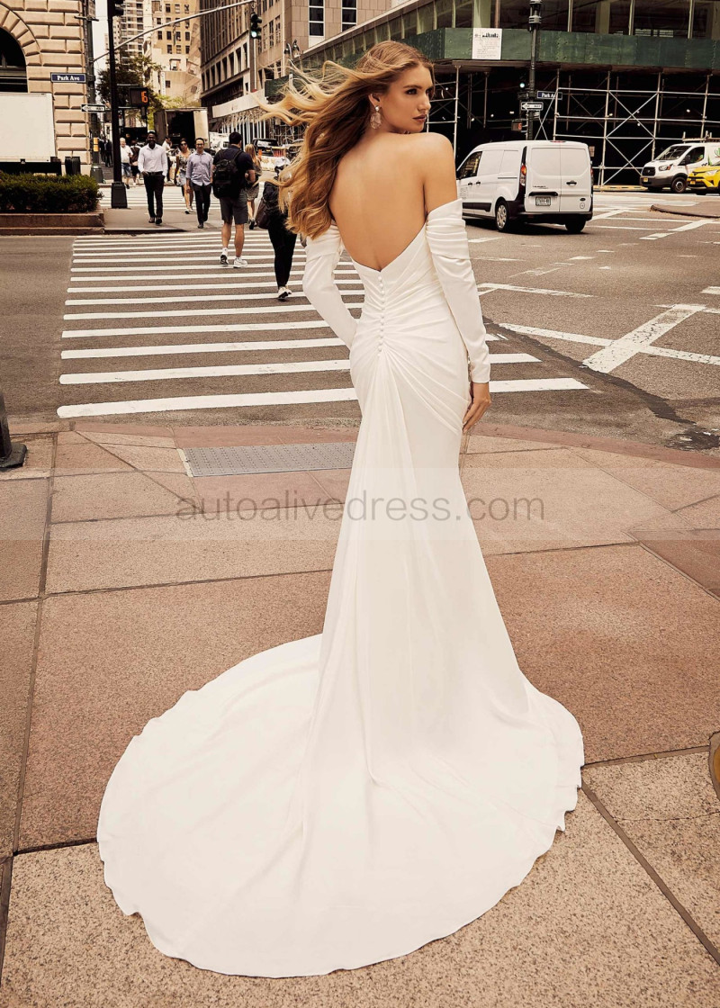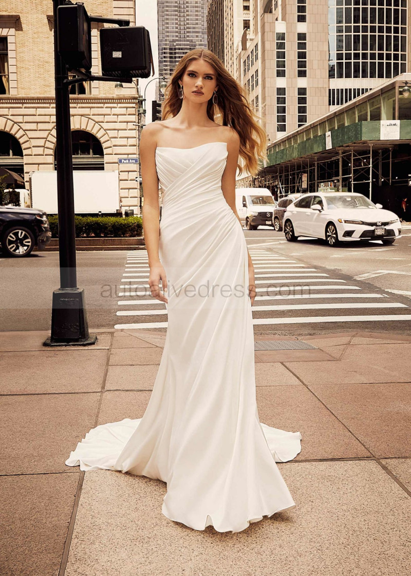 Strapless Ivory Pleated Satin Unusual Wedding Dress