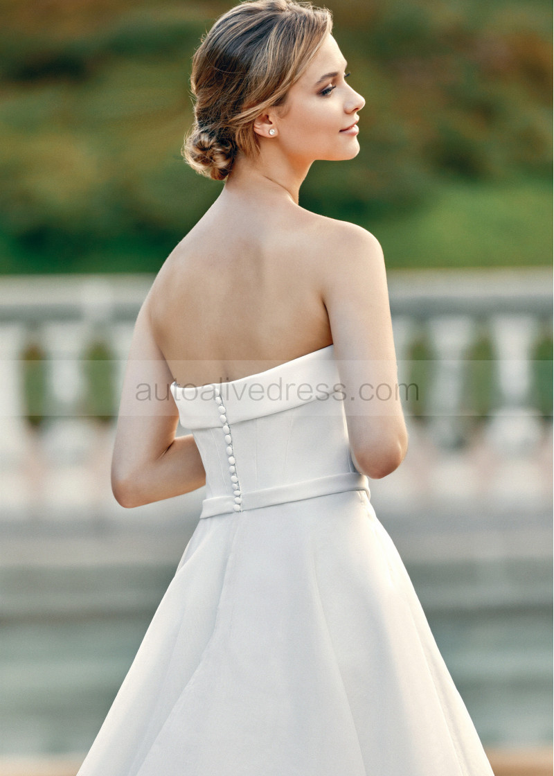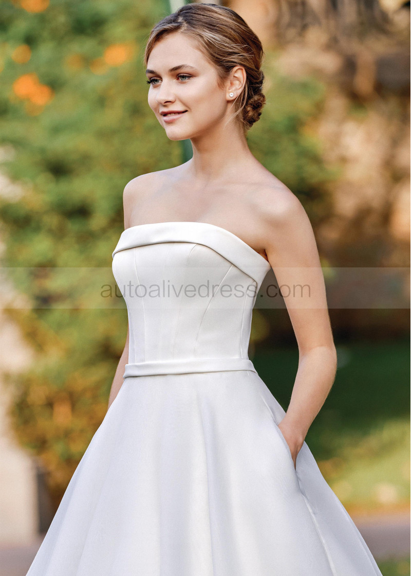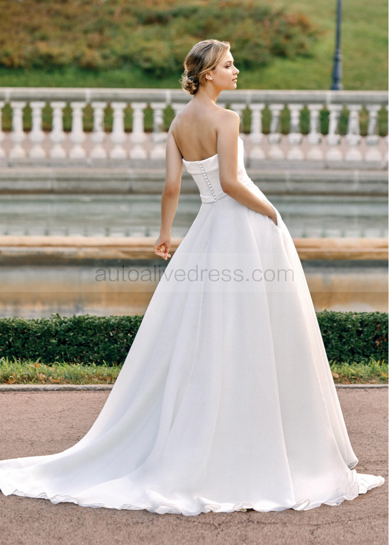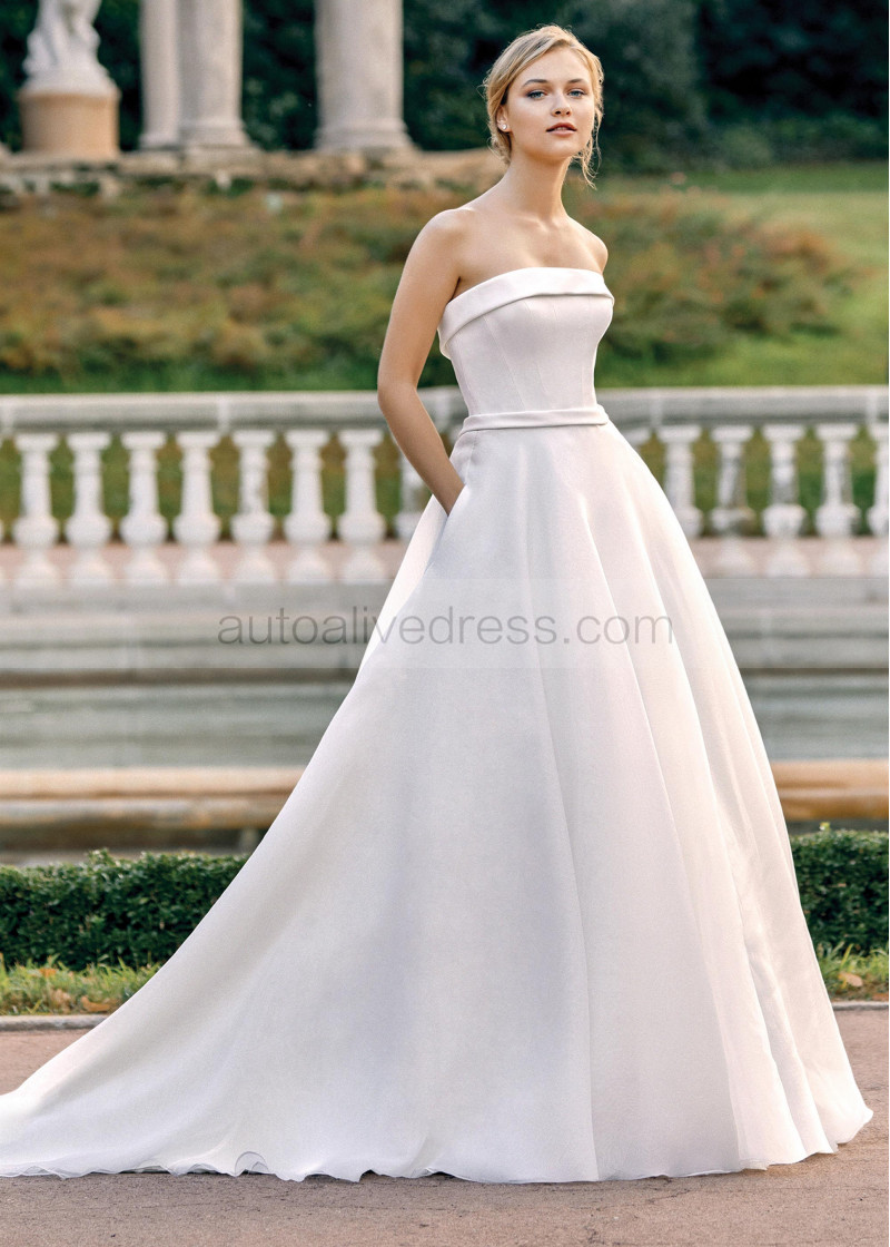 Strapless Ivory Satin Organza Wedding Dress With Pockets