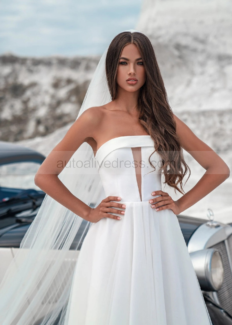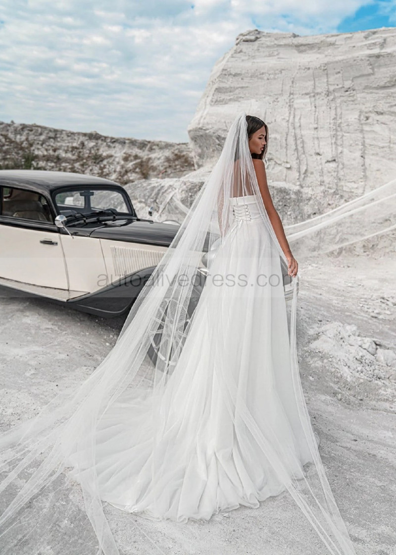 Strapless Ivory Satin Tulle Royal Wedding Dress