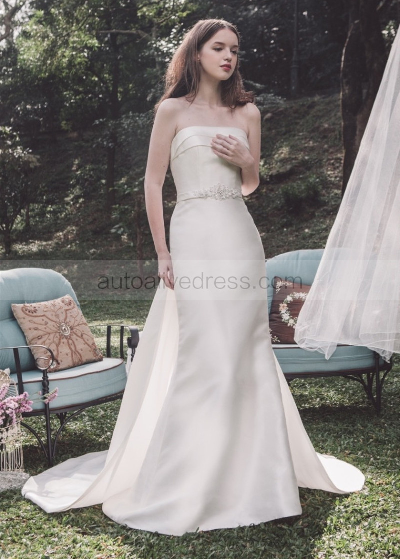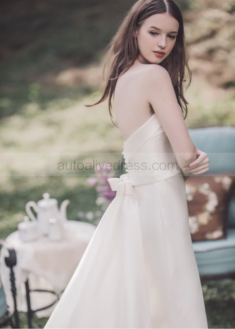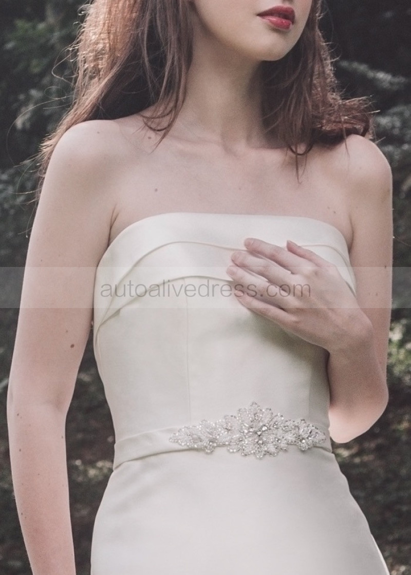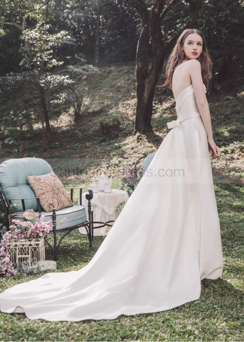 Strapless Ivory Satin Wedding Dress With Detachable Train