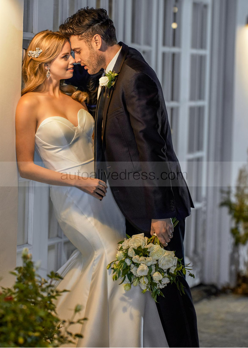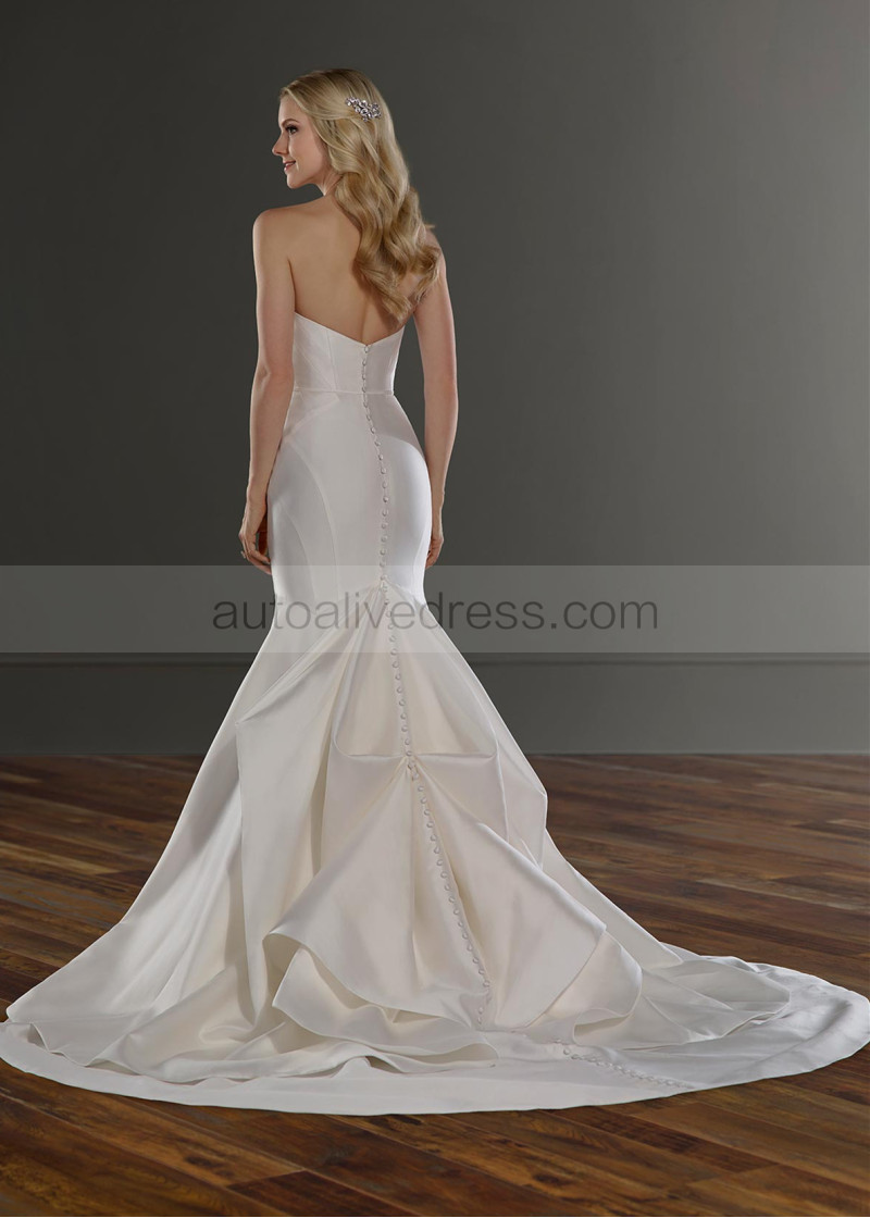 Strapless Sweetheart Ivory Satin Buttons Back Wedding Dress