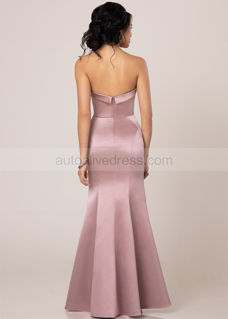 Strapless Sweetheart Mauve Satin Bridesmaid Dress