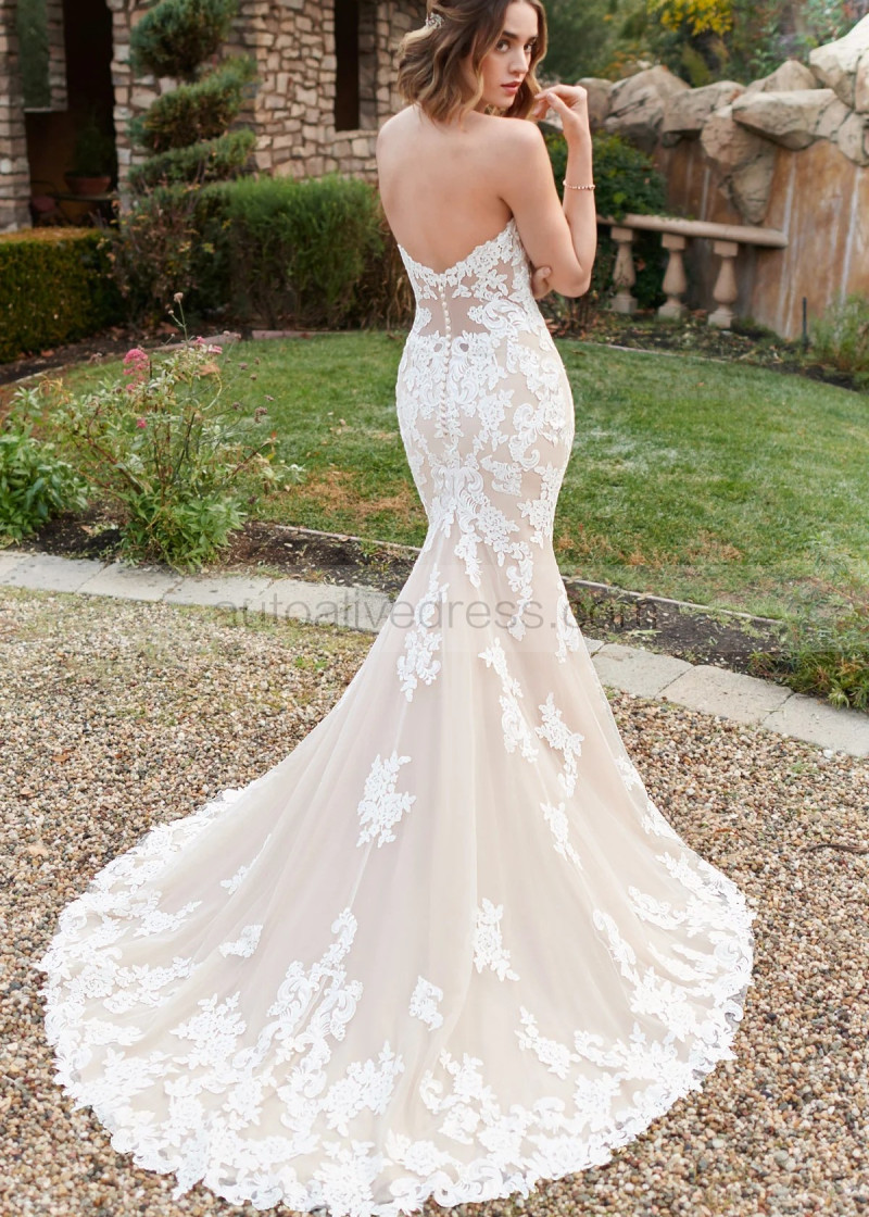 Strapless Sweetheart Neck Ivory Lace Tulle Romantic Wedding Dress