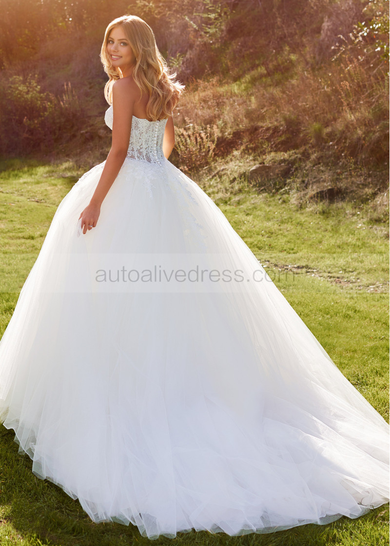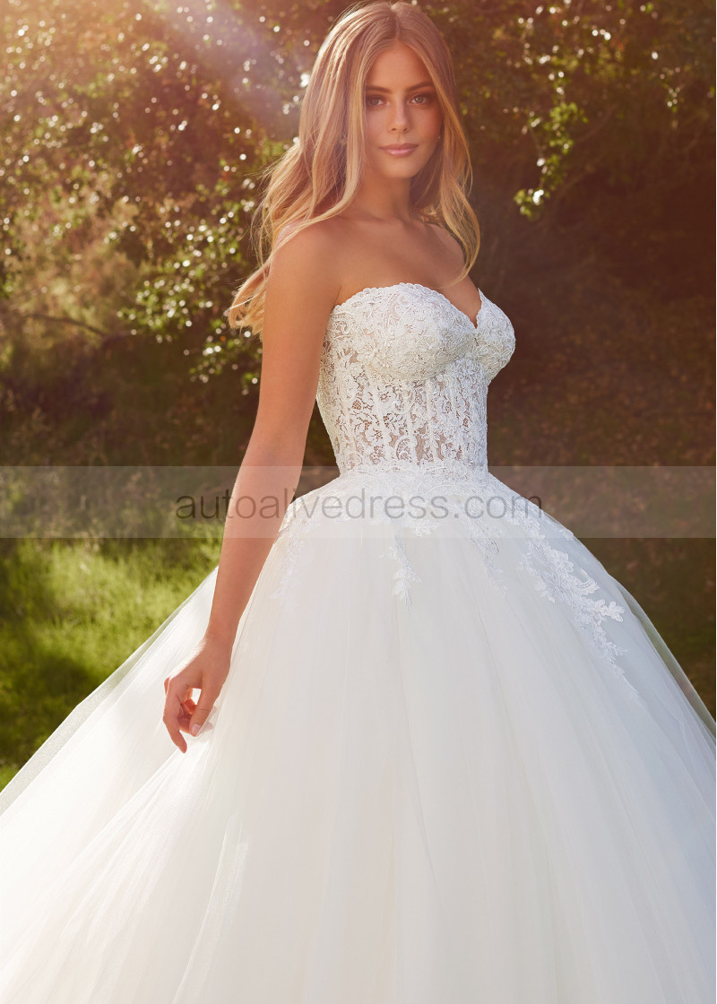 Strapless Sweetheart Neck Ivory Lace Tulle Royal Wedding Dress