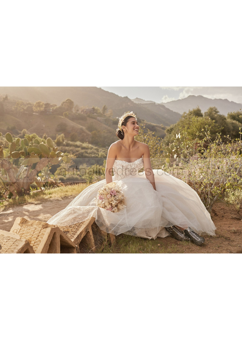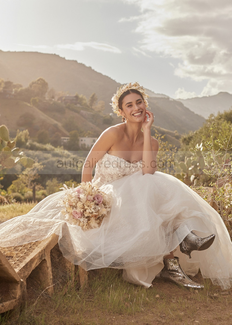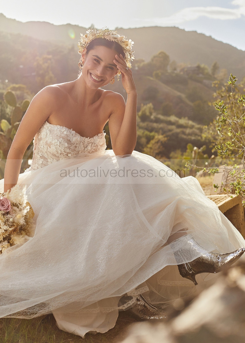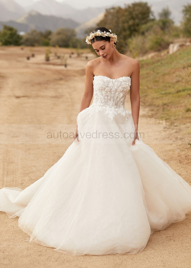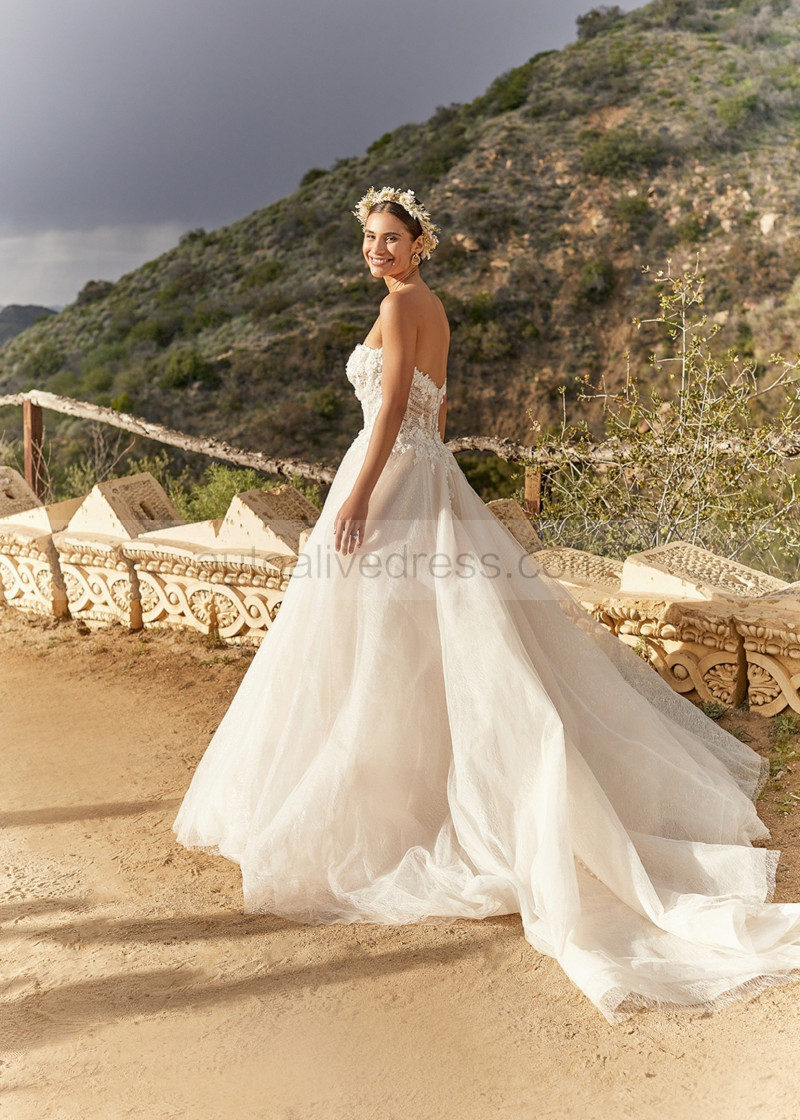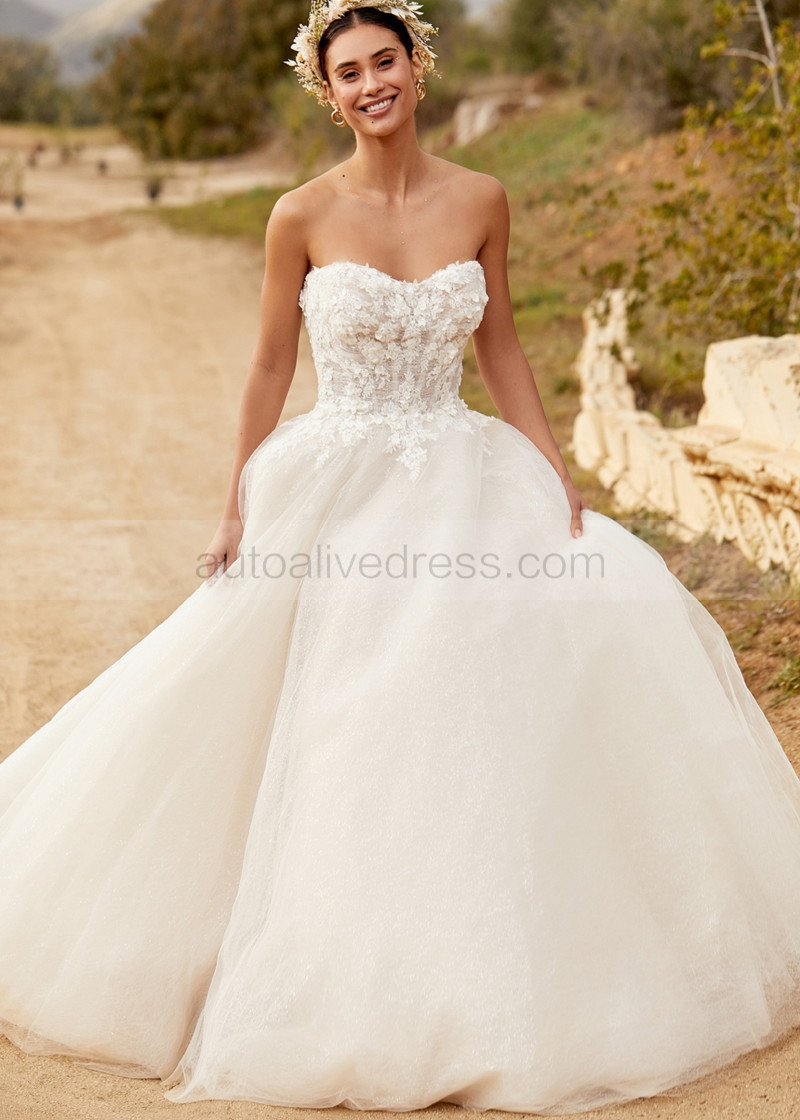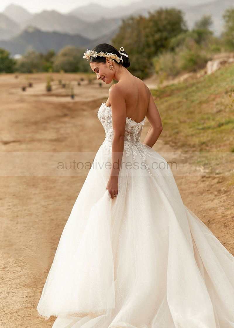 Strapless Sweetheart Neck Ivory Lace Tulle Sparkly Wedding Dress