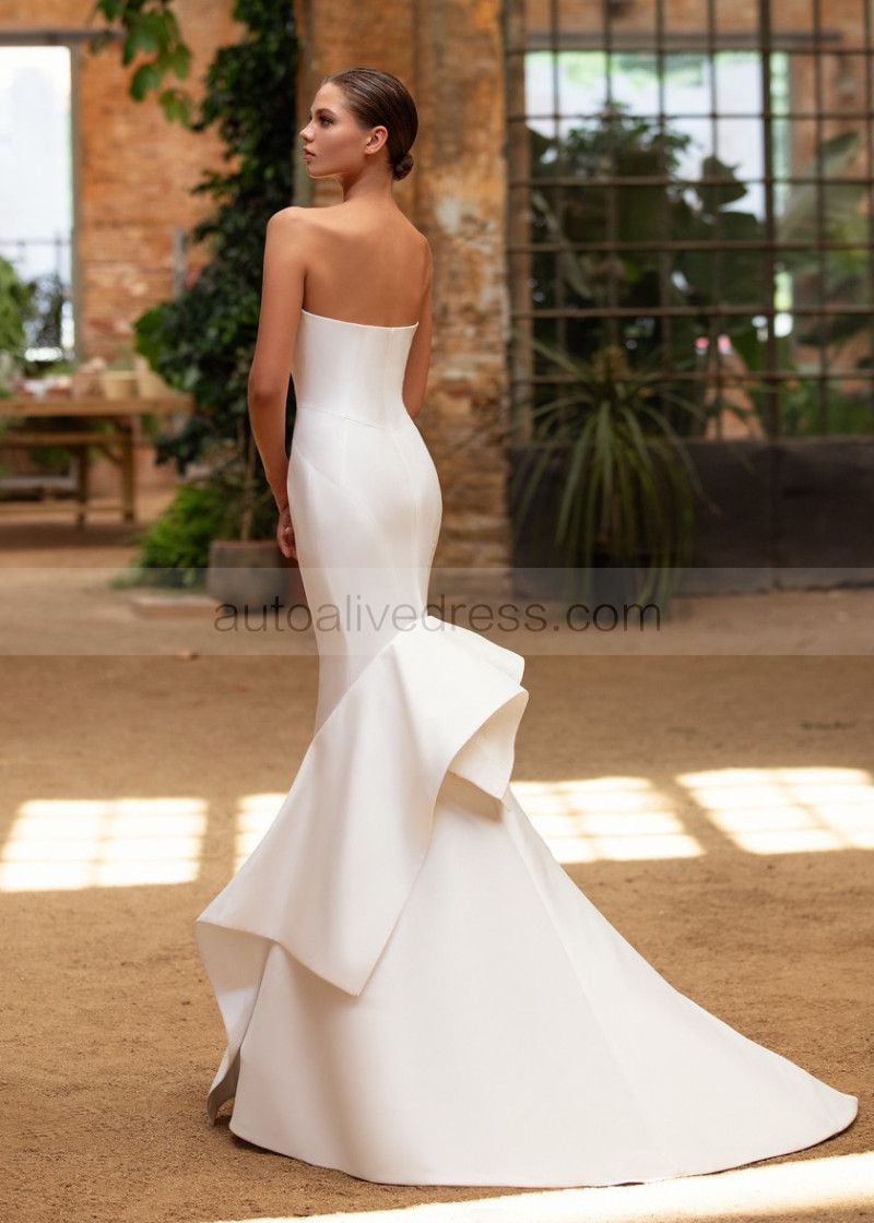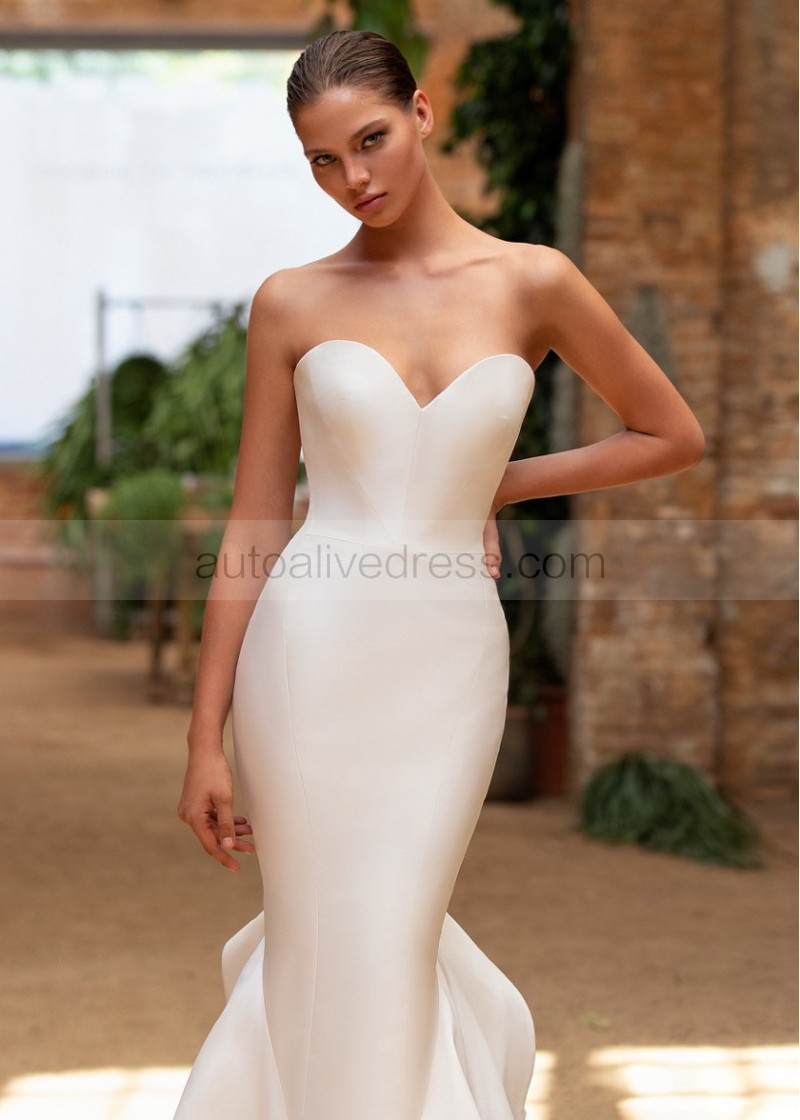 Strapless Sweetheart Neck Ivory Satin Ruffle Wedding Dress