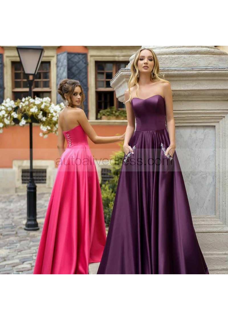 Strapless Sweetheart Neck Satin Beautiful Evening Dress With Pockets