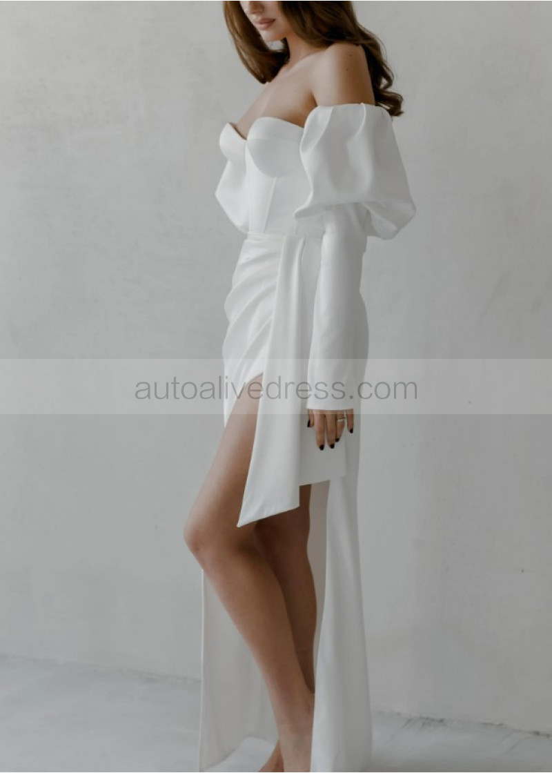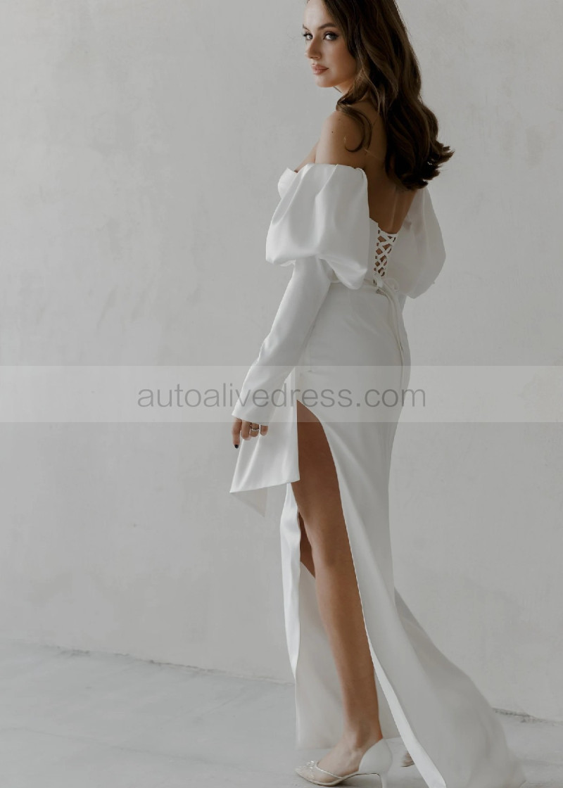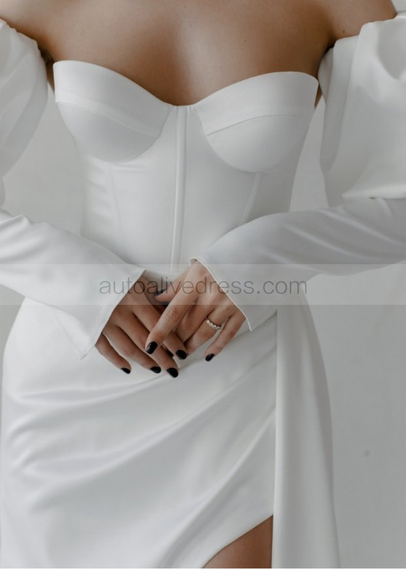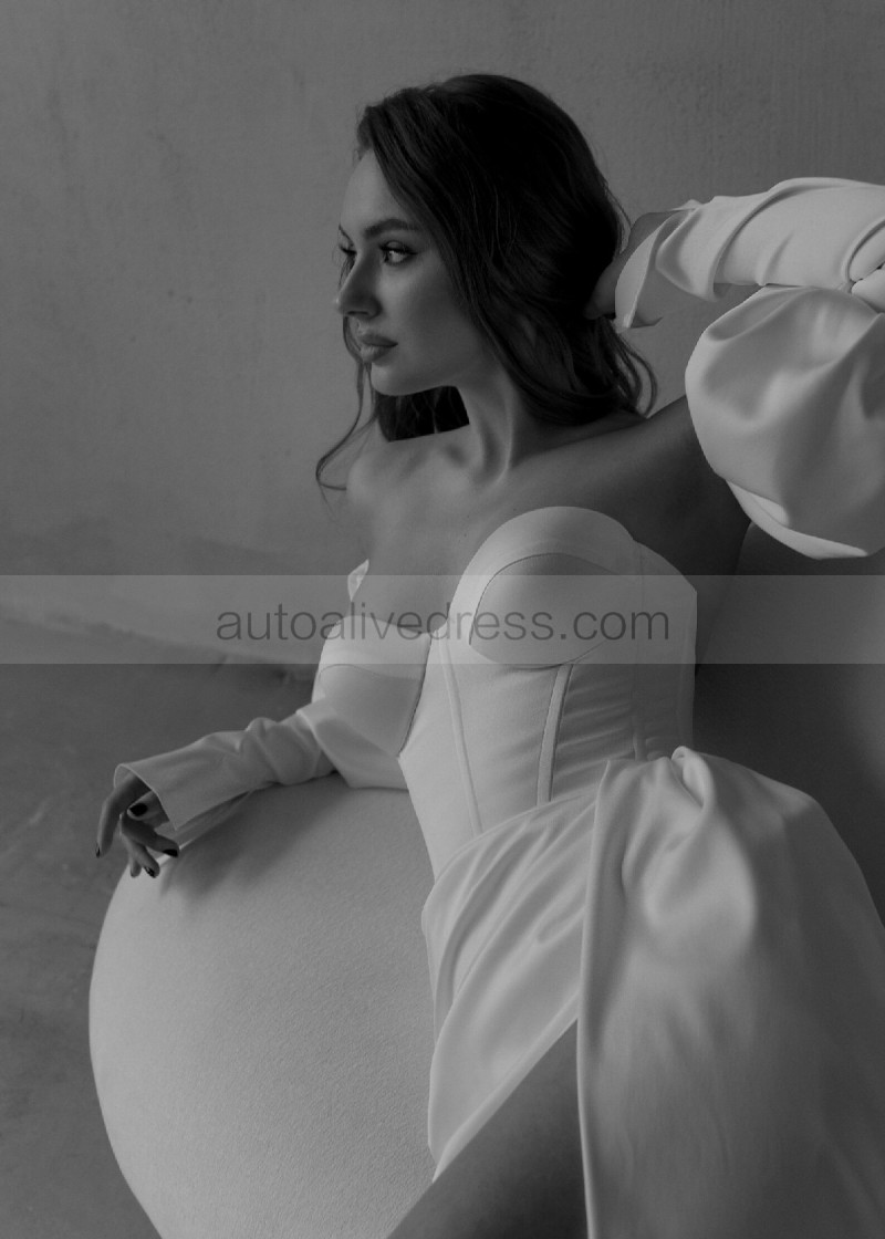 Sweetheart Corset Ivory Satin Wedding Dress With Detachable Sleeves