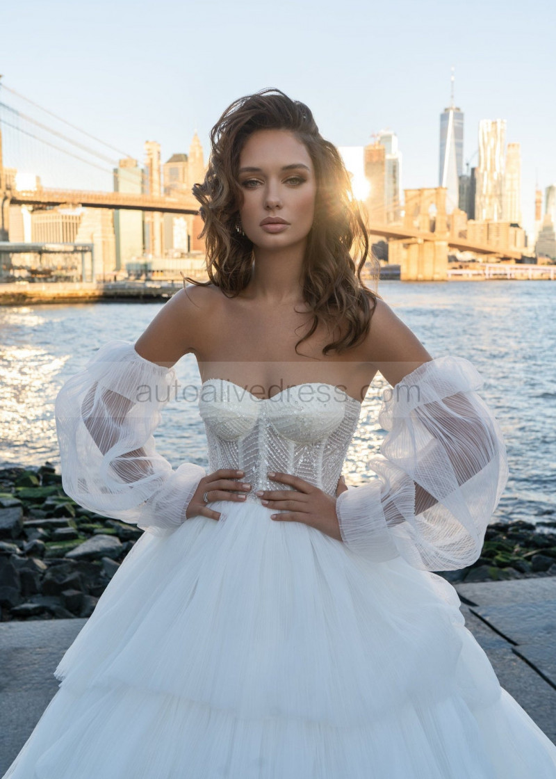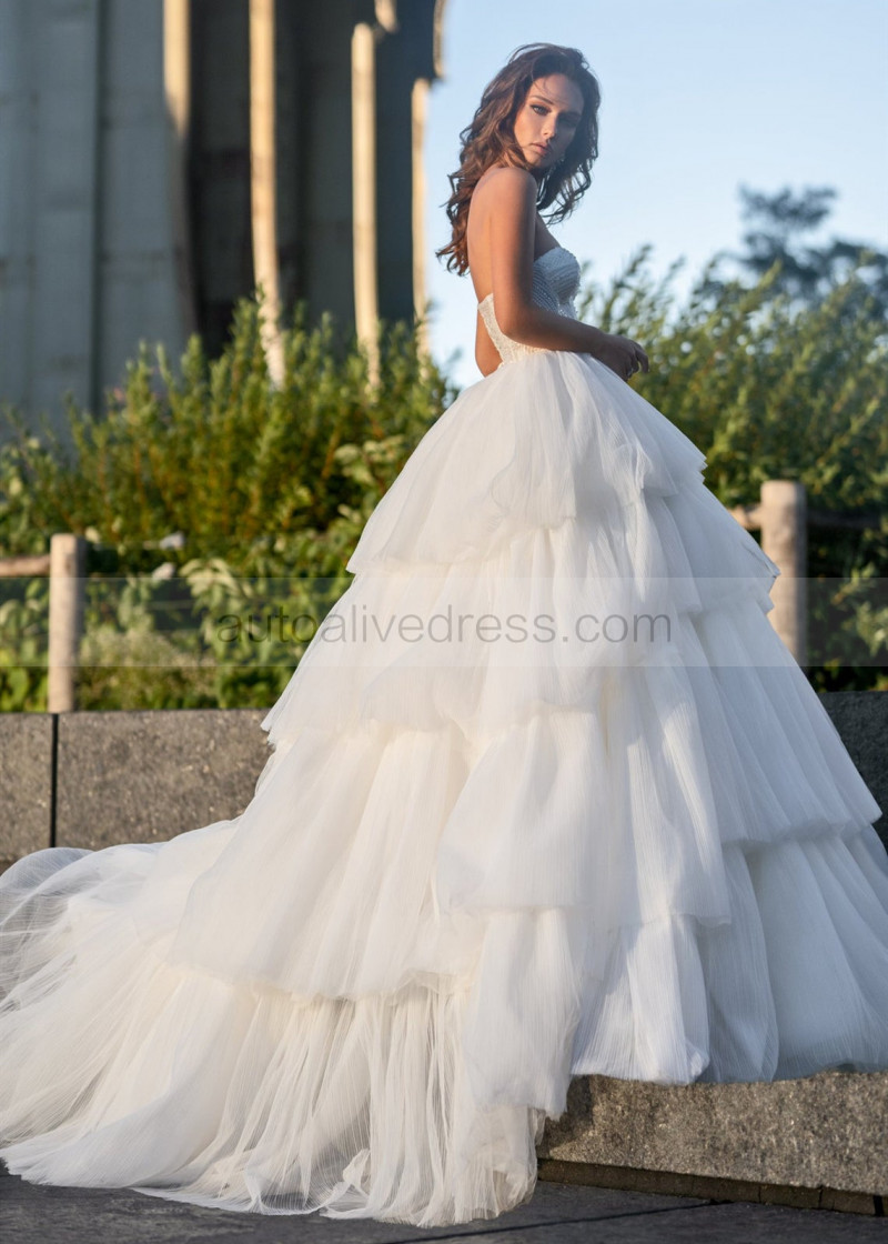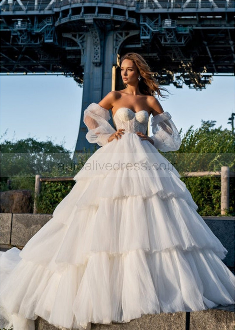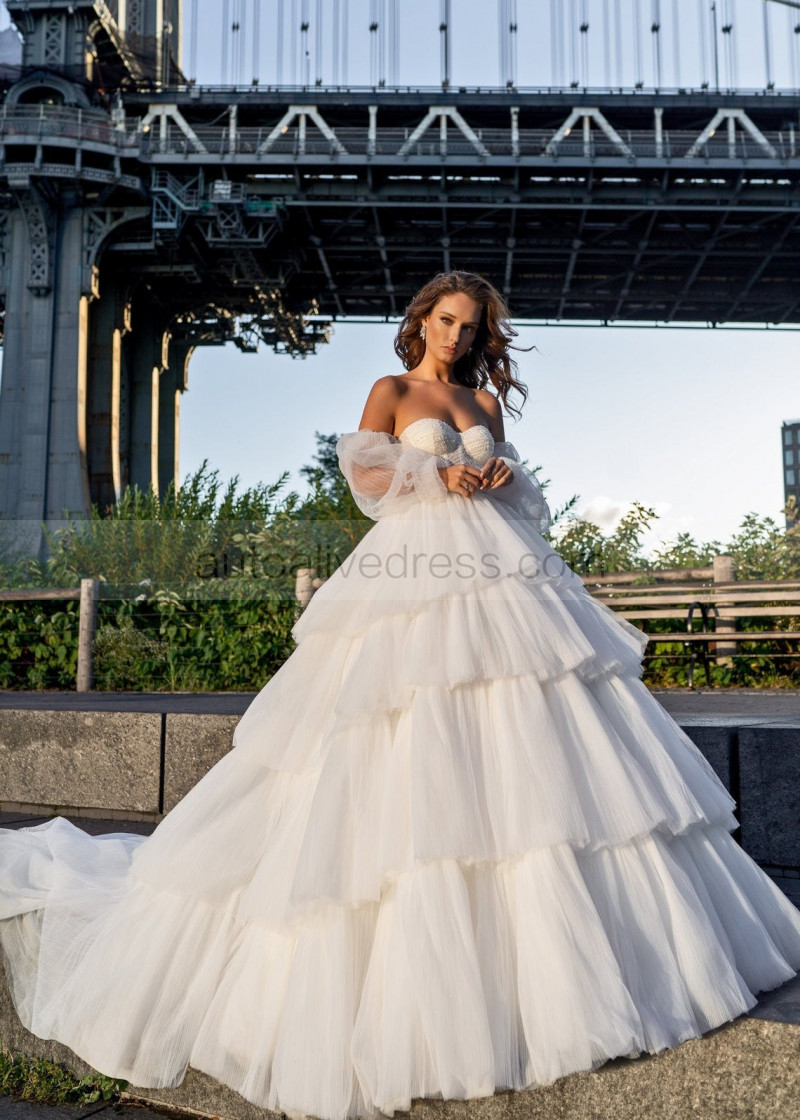 Sweetheart Ivory Dramatic Layered Wedding Dress Ball Gown