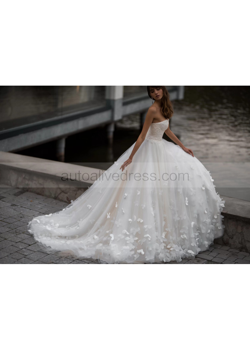 Sweetheart Neck Ivory Lace Tulle 3D Flowers Romantic Wedding Dress