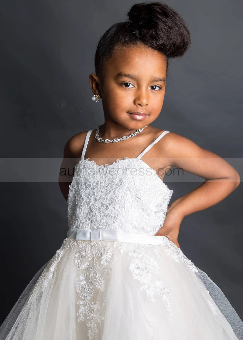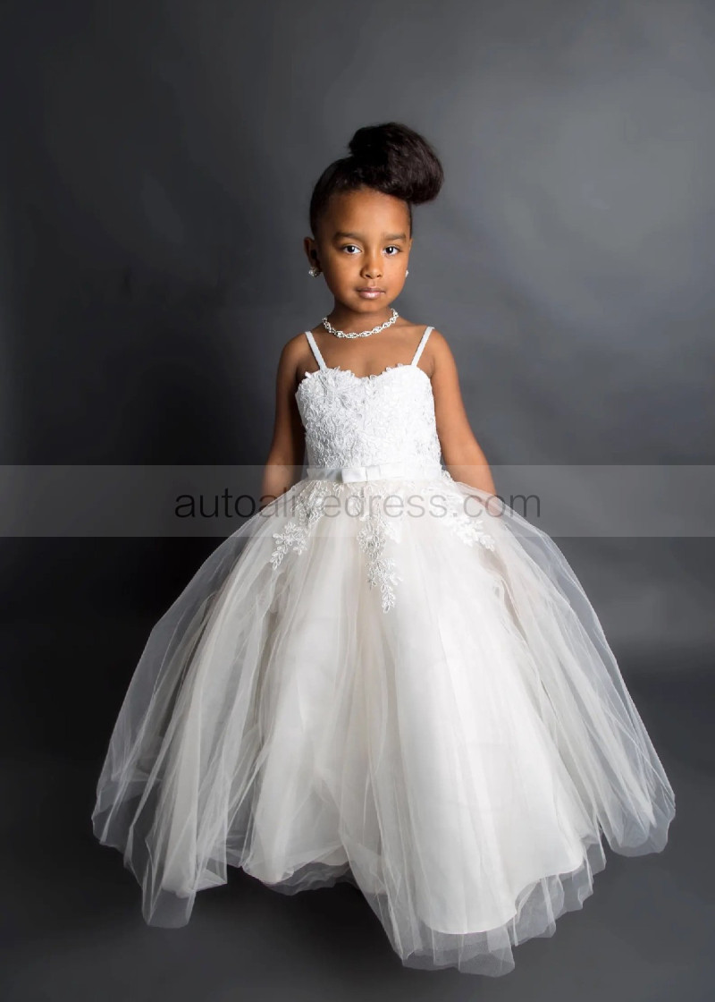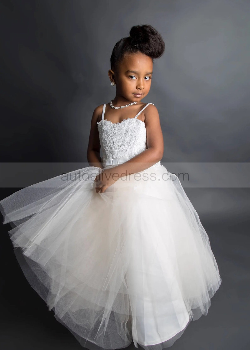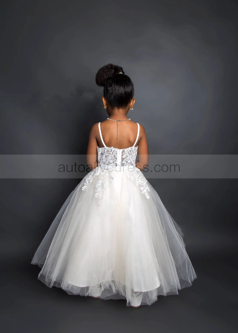 Sweetheart Neck Ivory Lace Tulle Long Flower Girl Dress