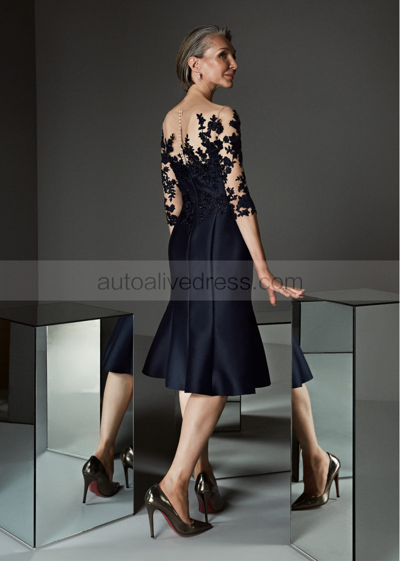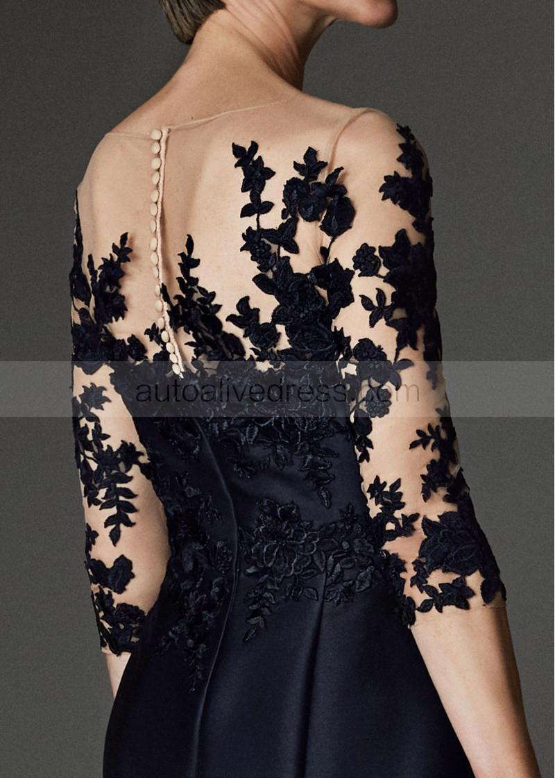 Three Quarter Sleeves Black Lace Satin Mother Of The Bride Dress