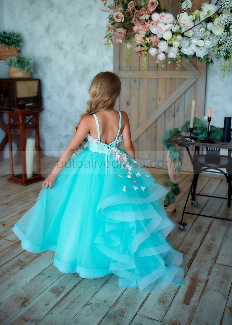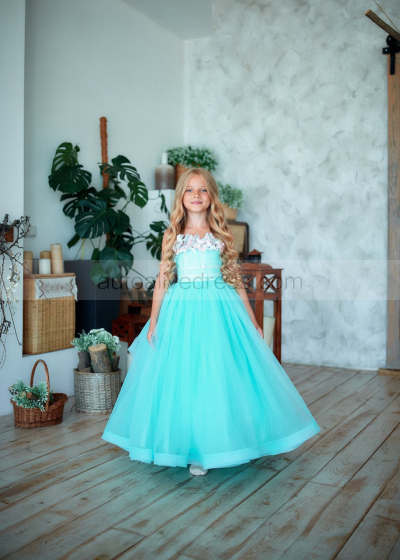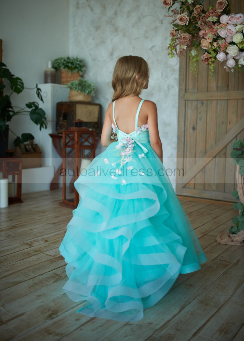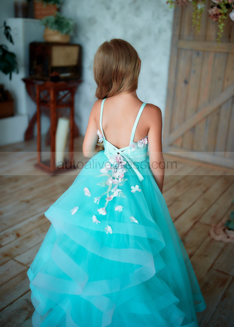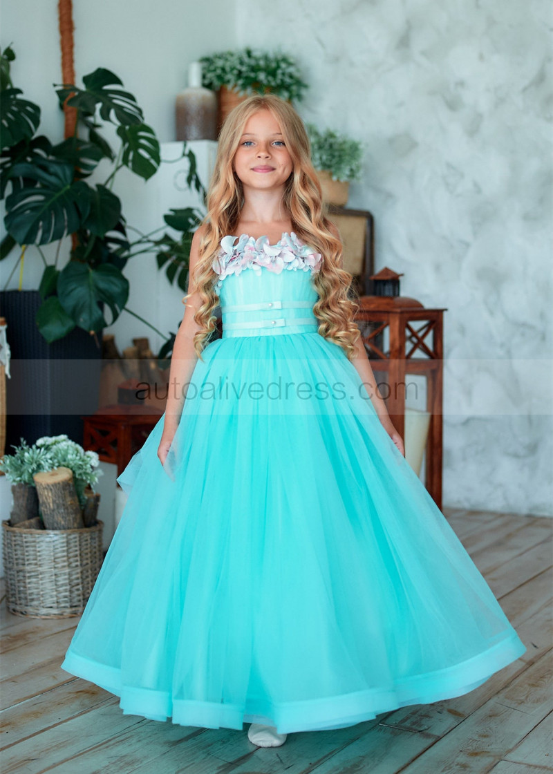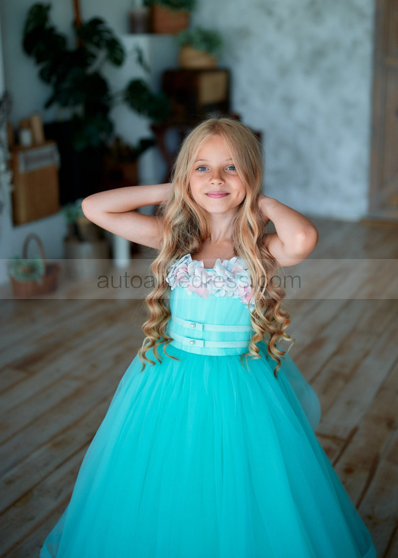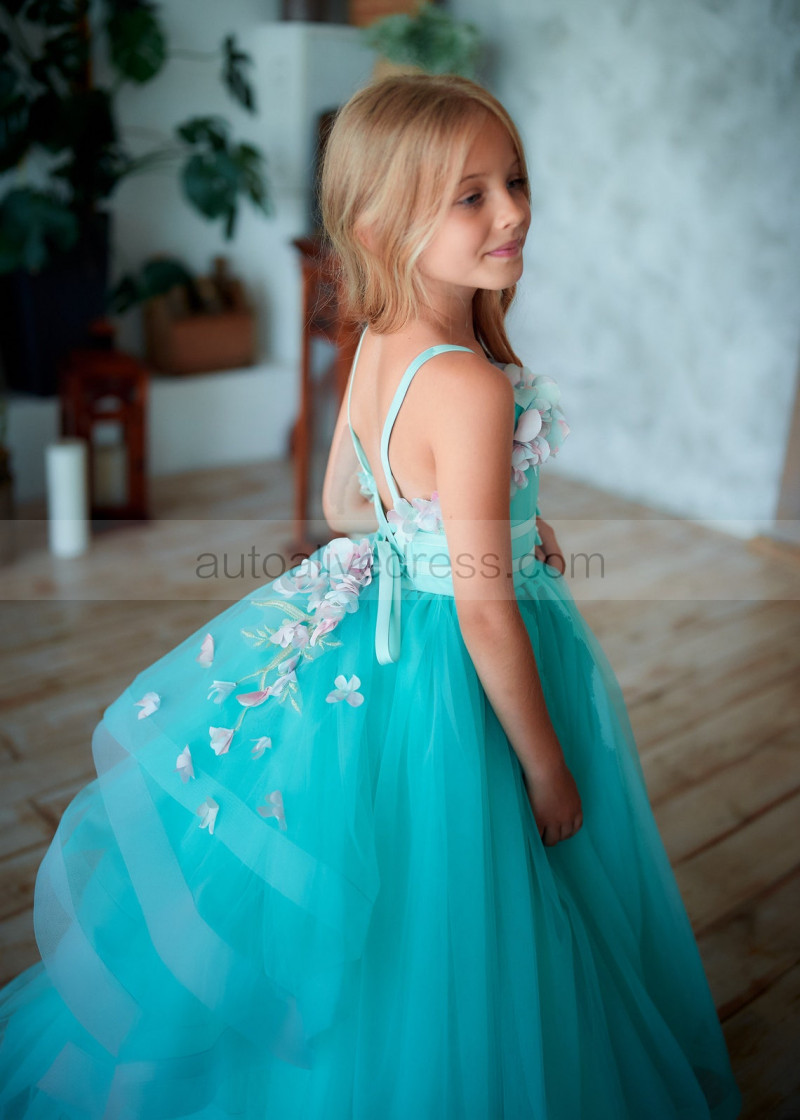 Turquoise Tulle 3D Flowers Flower Girl Dress