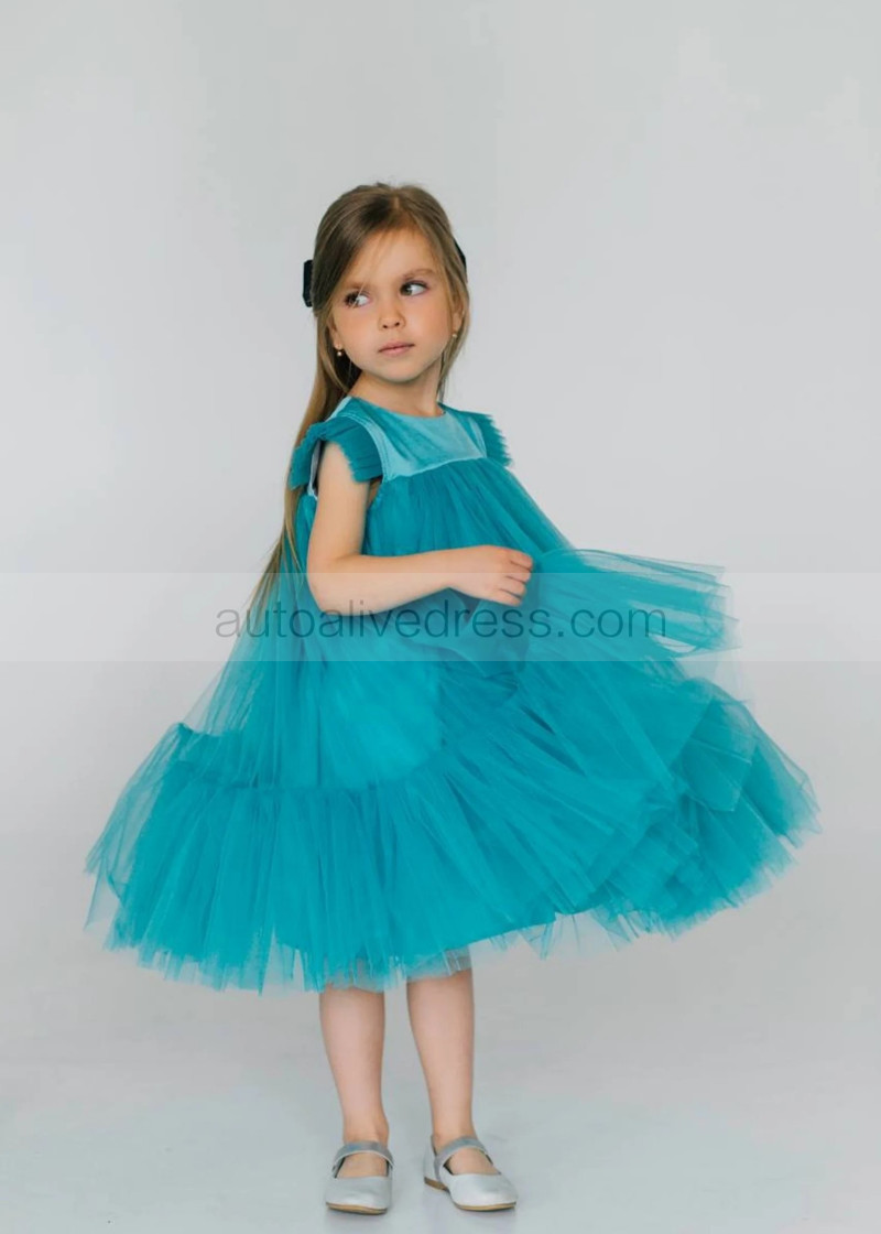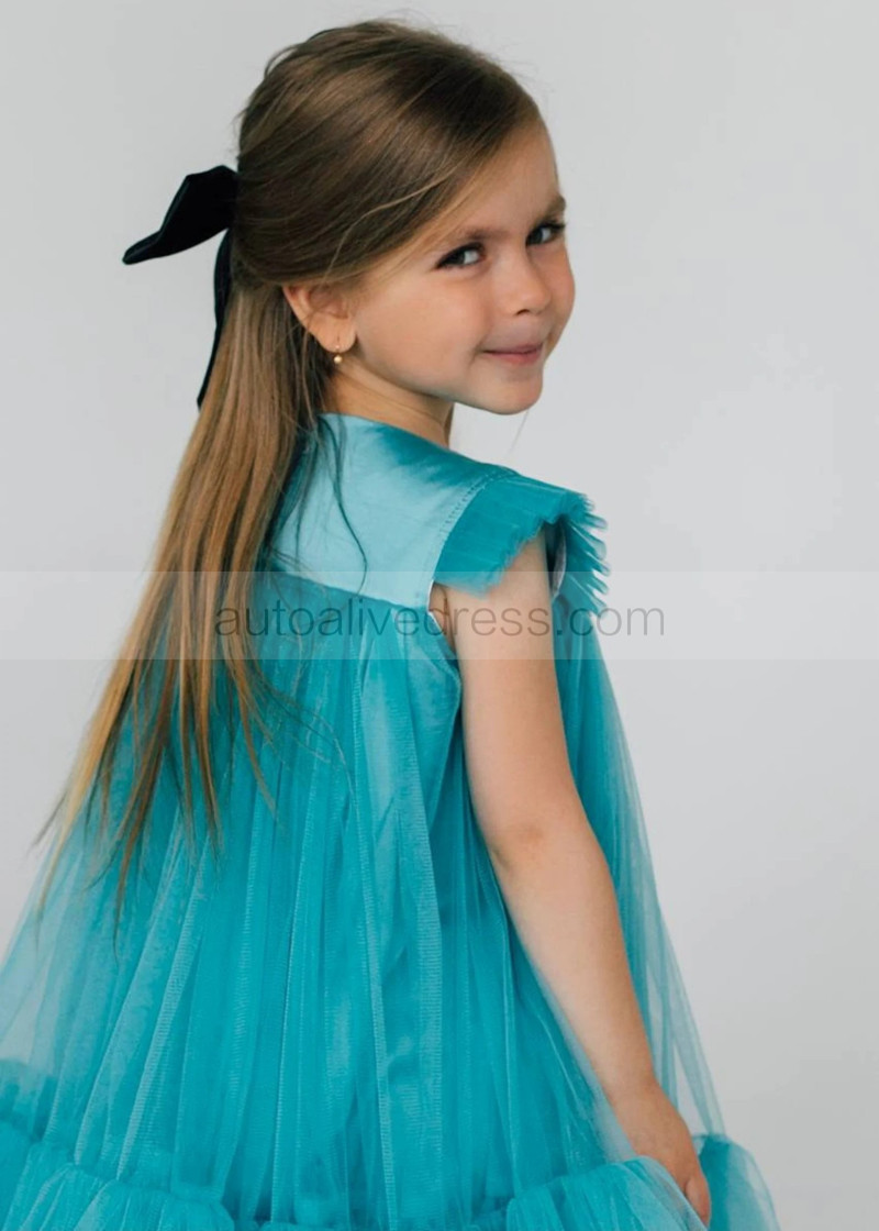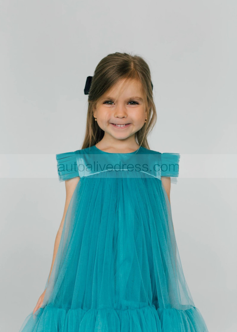 Turquoise Tulle Empire Waist Flower Girl Dress