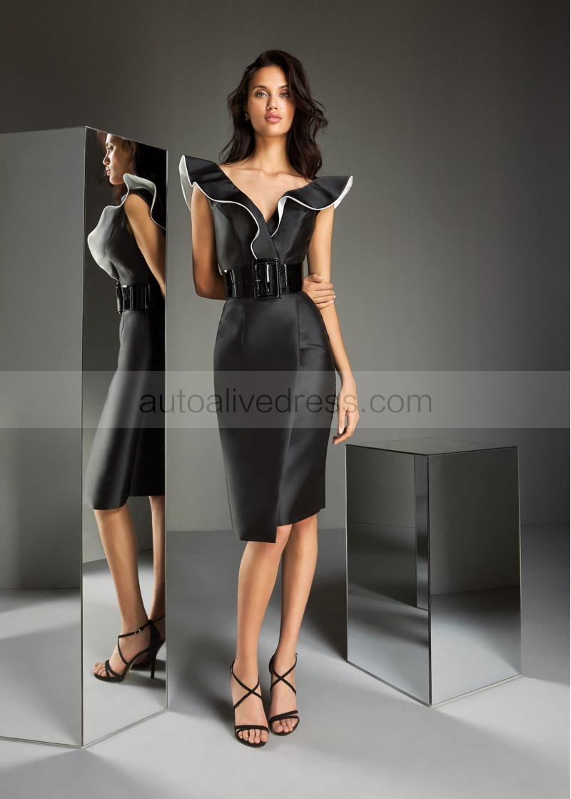 V Neck Black Satin Fashion Mother Of The Bride Dresses