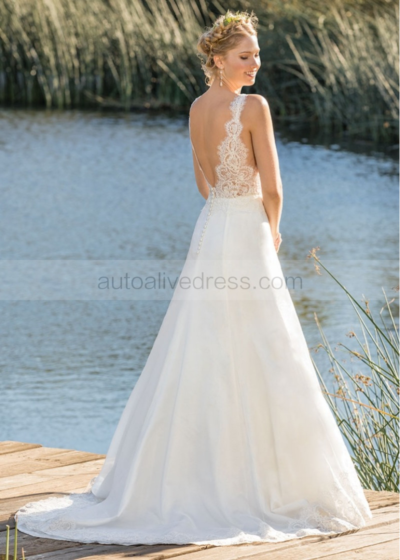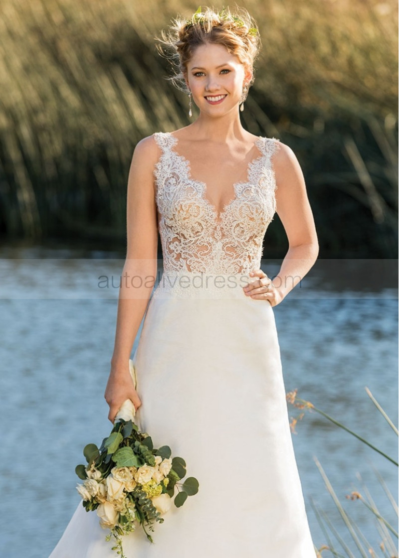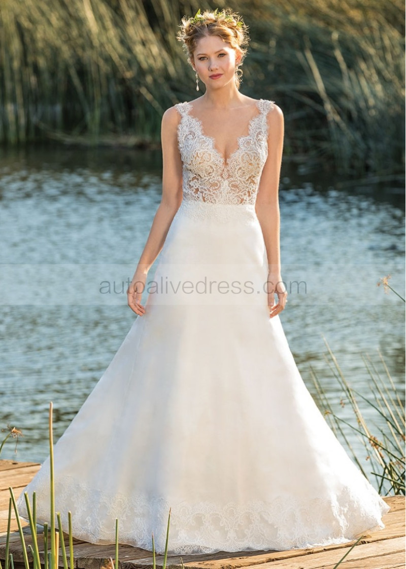 V Neck Ivory Lace Organza Stunning Wedding Dress