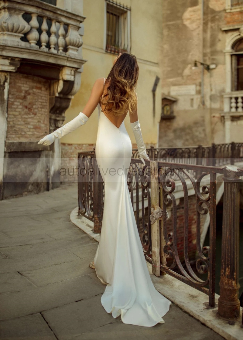 V Neck Ivory Satin Backless Sexy Wedding Dress